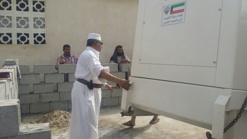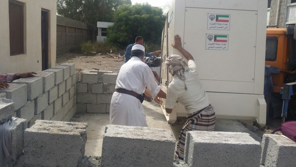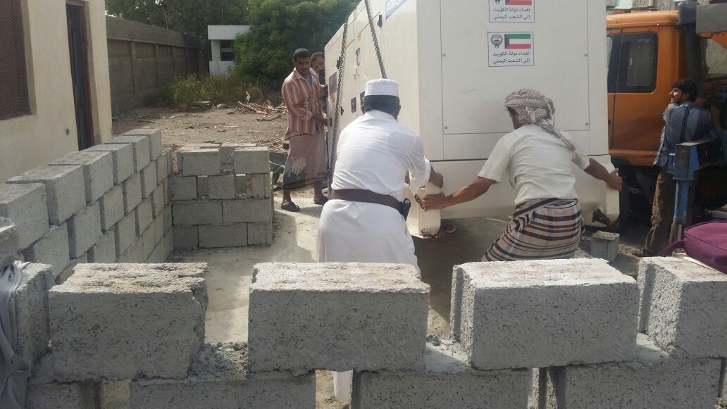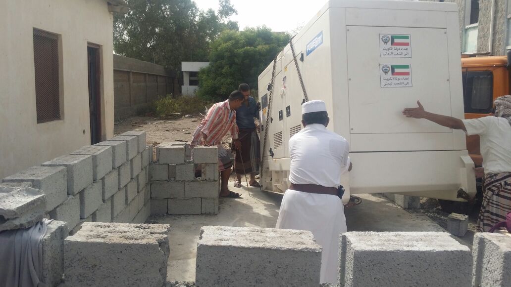 تم اليوم و في هذا الشهر الكريم شهر رمضان الفضيل تركيب و تموضع المولد الكهربائي الذي بقوة 180 كيلو وات الذي قدم كهدية من دولة الكويت الشقيقة ممثلة بالمدير التنفيذي لصندوق رعاية المرضى الكويتي لمواجهة الانقطاعات الكهربائية الحاصلة في الصيف .