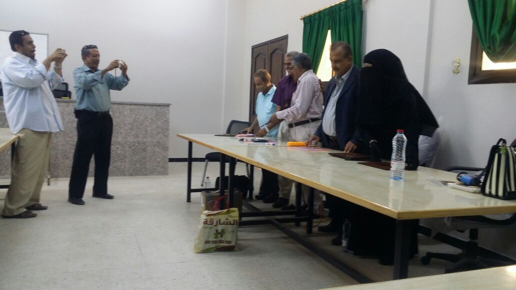 أختتم اليوم الأخ د. نجيب ناصر الحميقاني عميد معهد د. أمين ناشر العالي للعلوم الصحيه و برفقته د. محمد عوض لرضي مدير معهد العلوم الصحية / سيئون ورشة العمل الخاصه لإدخال مادة “أخلاقيات المهنه” ضمن مناهج التمريض العام و القابلات بمعهد العلوم الصحية / عدن الكائن بالمعلا.