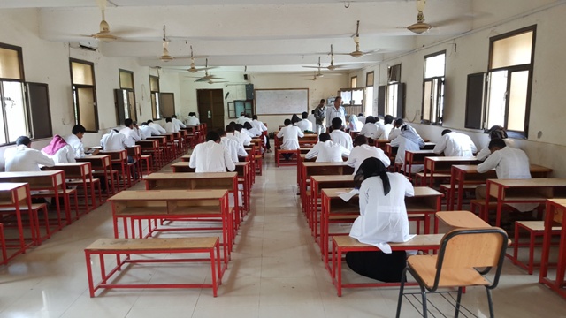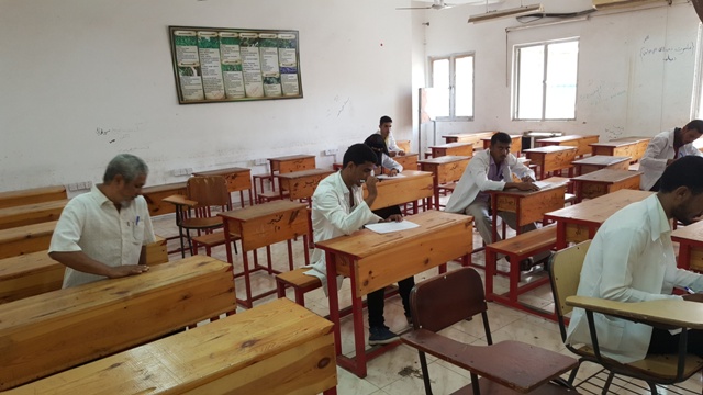 و في اجواء مليئة بالهدوء و الاجتهاد عكف طلاب و طالبات المعهد على اوراق الاجابة للامتحان آملين تحقيق اعلى درجات التفوق و النجاح لهذا الفصل الدراسي .