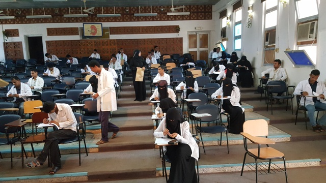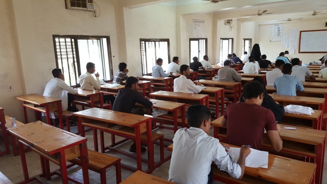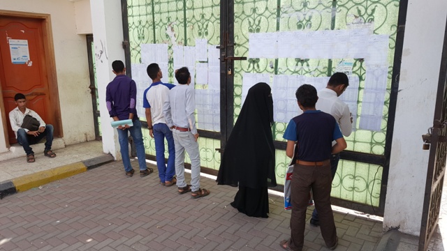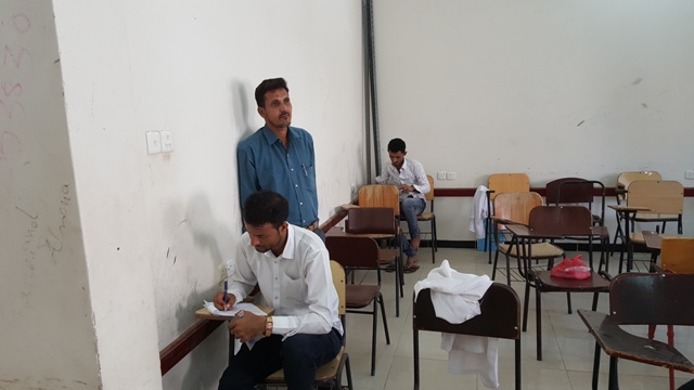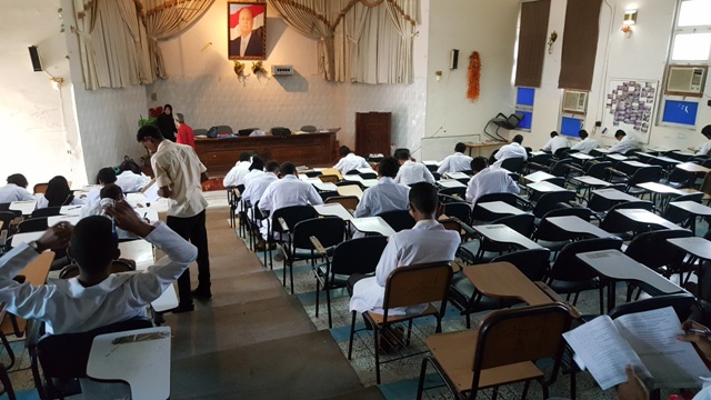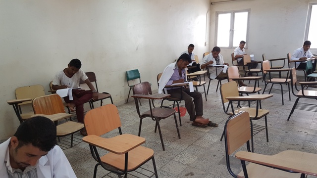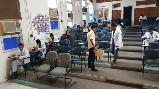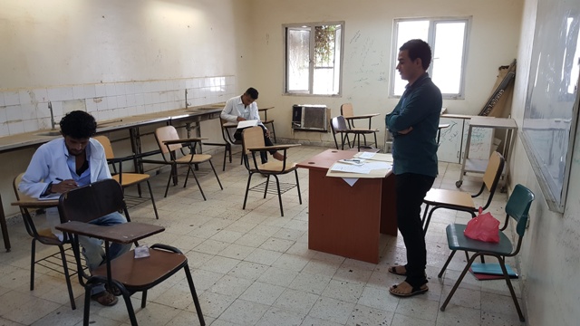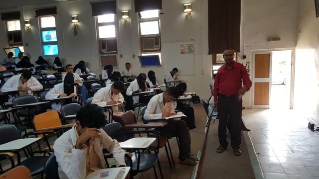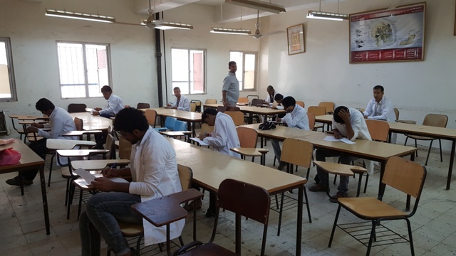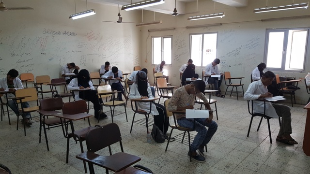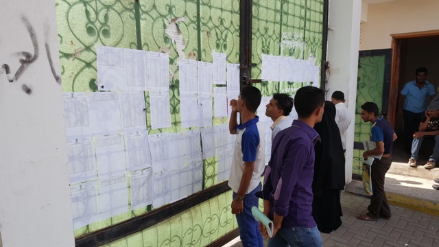حيث توزع الطلاب و الطالبات على قاعات الامتحانات وفقا لكشوفات جداول توزيع الطلاب المحددة على القاعات المخصصة للامتحان و على فترتي الامتحان الاولى و الثانية.