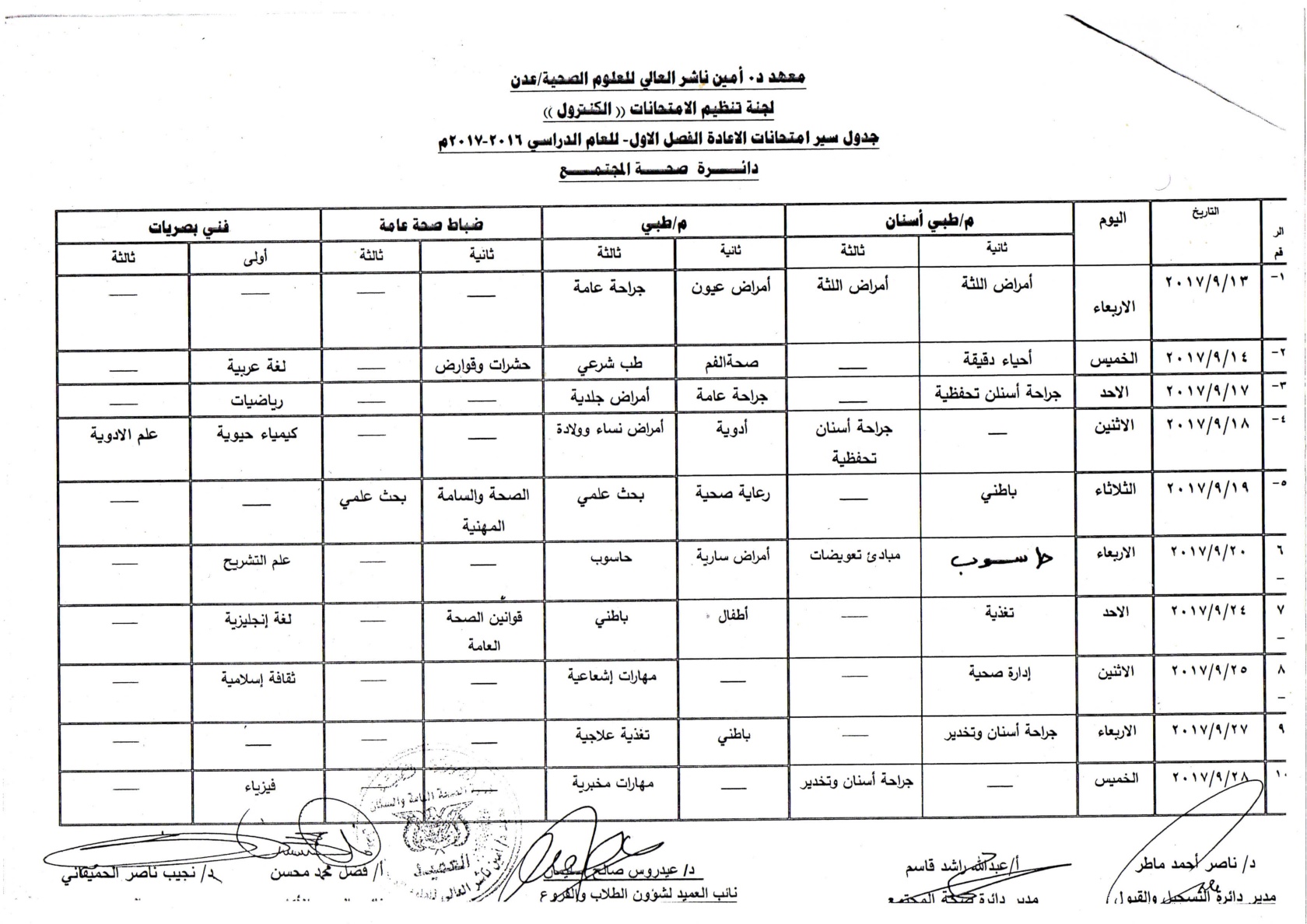 جدول سير امتحانات الاعادة للفصل الاول للعام الدراسي 2016 /2017 مدائرة علوم التمريضاضغط هنا لتحميلة بصيغة PDF=====================دائرة التقنيات الطبيةاضغط هنا لتحميلة بصيغة PDF=========================دائرة صحة المجتمعاضغط هنا لتحميلة بصيغة PDF 2017-08-24zuhaer ahmad
