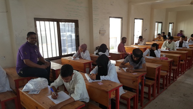 حيث توزع الطلاب و الطالبات على قاعات الامتحانات وفقا لكشوفات جداول توزيع الطلاب المحددة على القاعات المخصصة للامتحان و على فترتي الامتحان الاولى و الثانية.