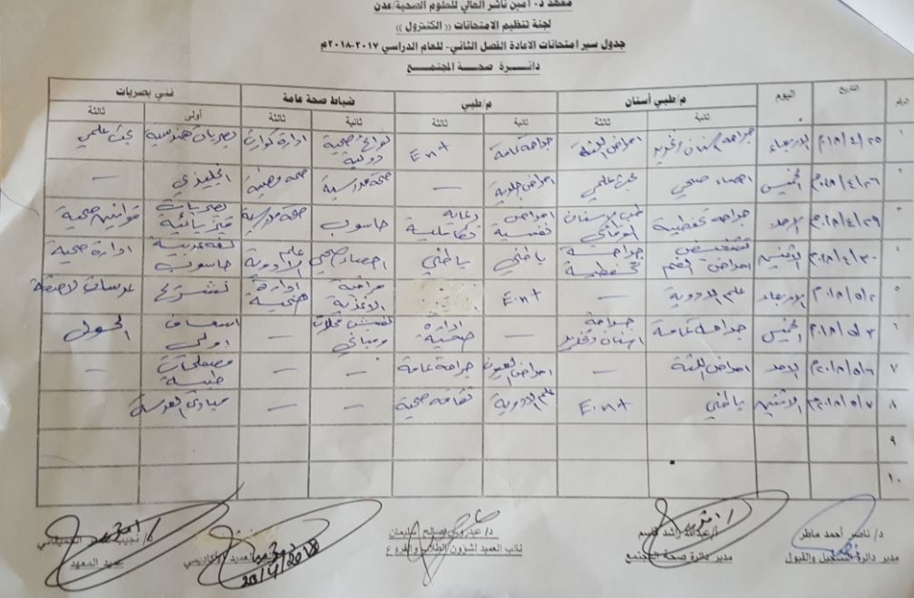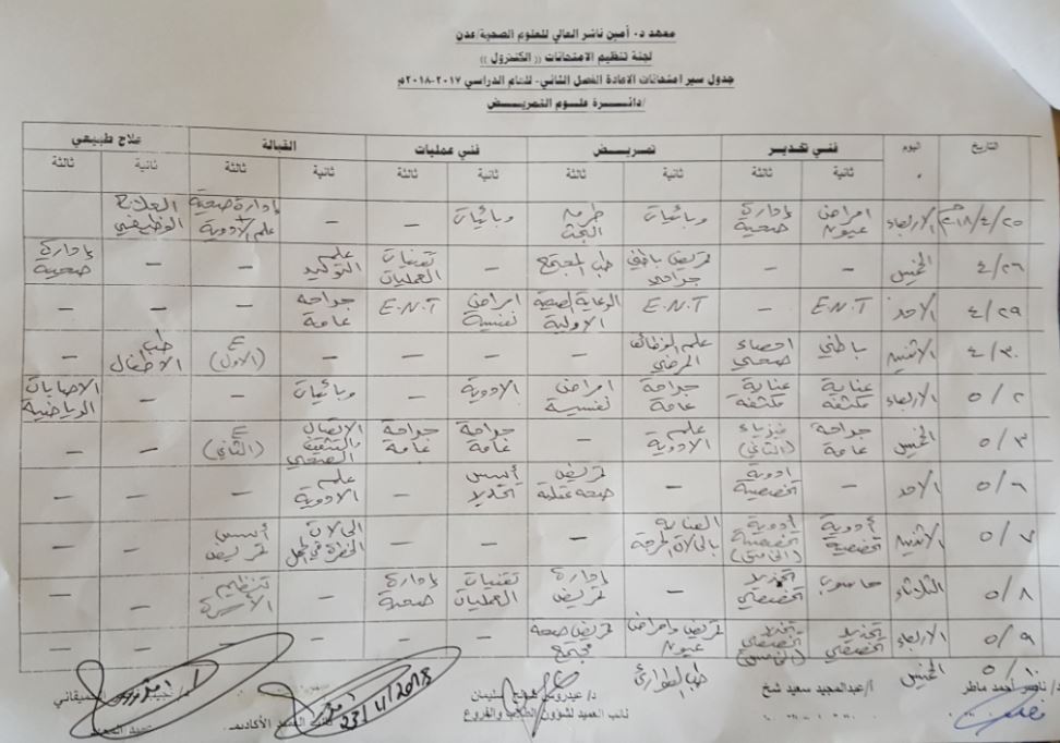 جدول سير إمتحانات الإعادة للفصل الثاني للعام الدراسي 2017 / 2018 م