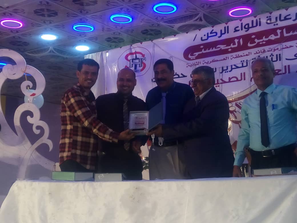 وقد قام الدكتور نجيب ناصر الحميقاني والدكتور رياض باجبور. مدير مكتب الصحة حضرموت الساحل والاستاذ محمد بازهده عميد المعهد الصحي المكلا بتوزيع الشهائد على الطلاب.