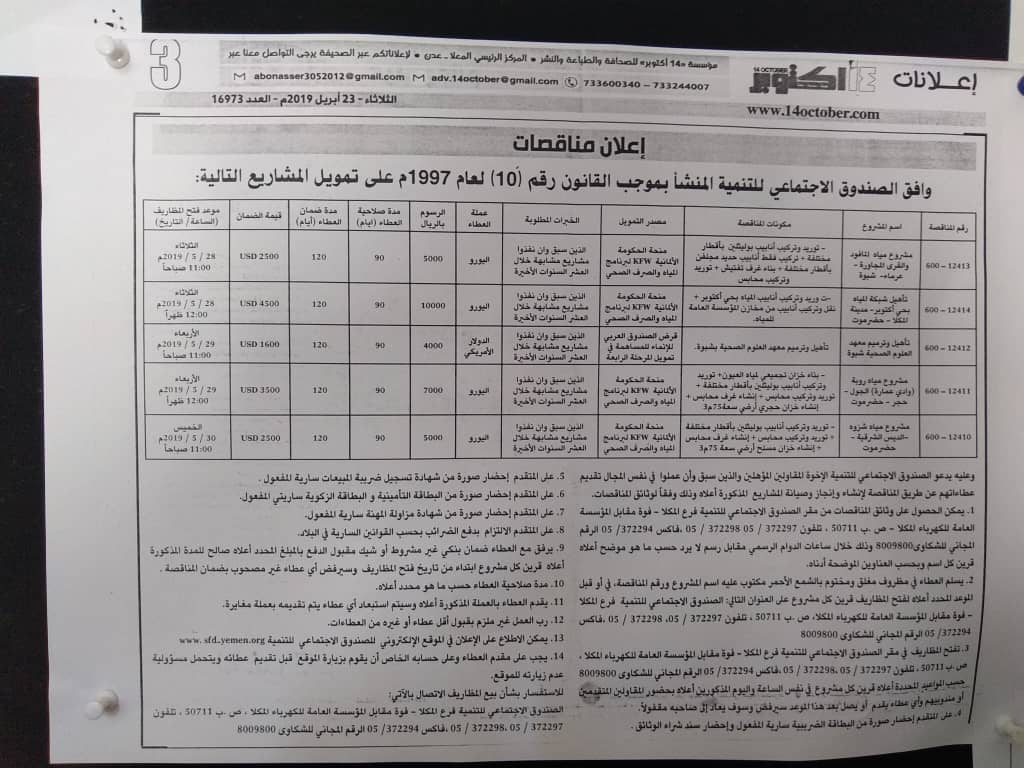الإعلان عن مناقصة لتأهيل و ترميم معهد العلوم الصحية / شبوة
