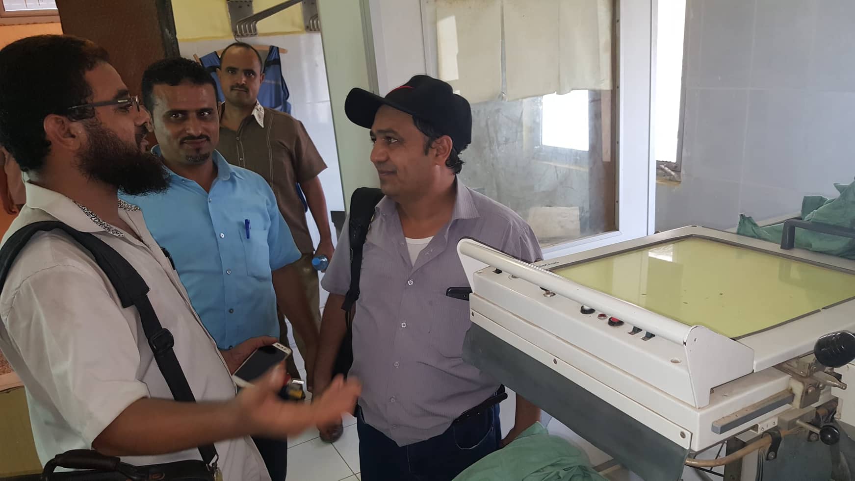 هذا و قد مثل الوفد المشترك عن وزارة الصحة و السكان الاخ المهندس / عرفات ناجي مدير عام التجهيزات و الصيانة و عن منظمة الصحة العالمية الاخ / فيصل علي المجملي مهندس التجهيزات الطبية و د. ناجي فضل كمنسق للزيارة. هذا و قد تسلم الوفد المشترك كشوفات كاملة و بالاحتياجات لجميع الاقسام التخصصية و للمعهد بصورة كاملة.