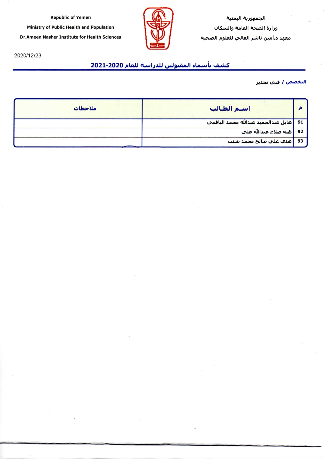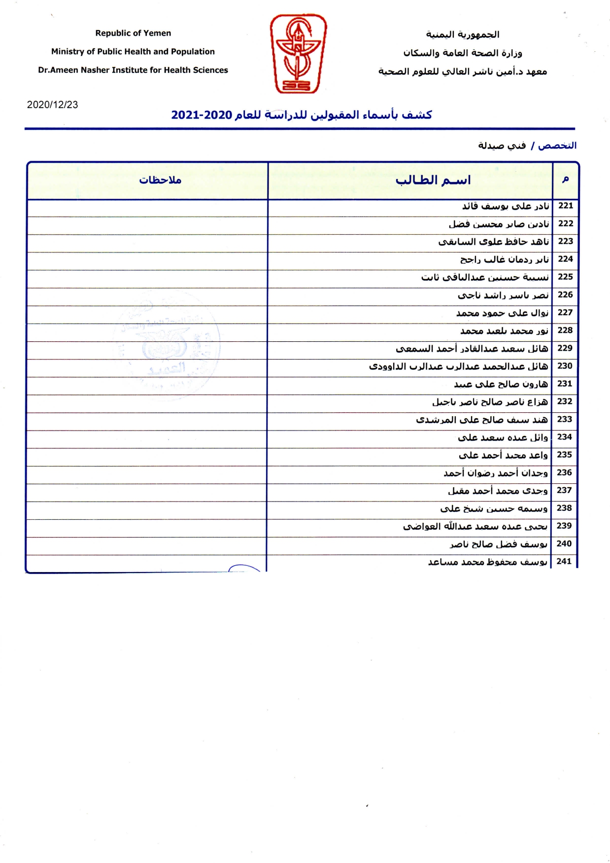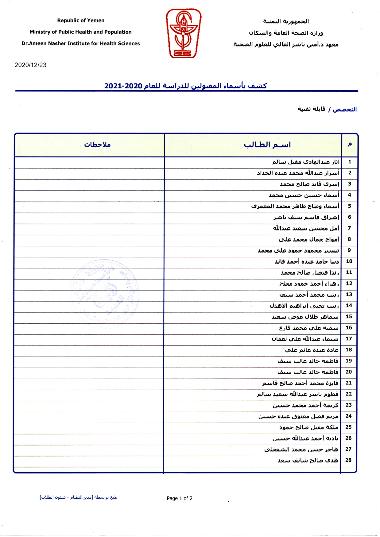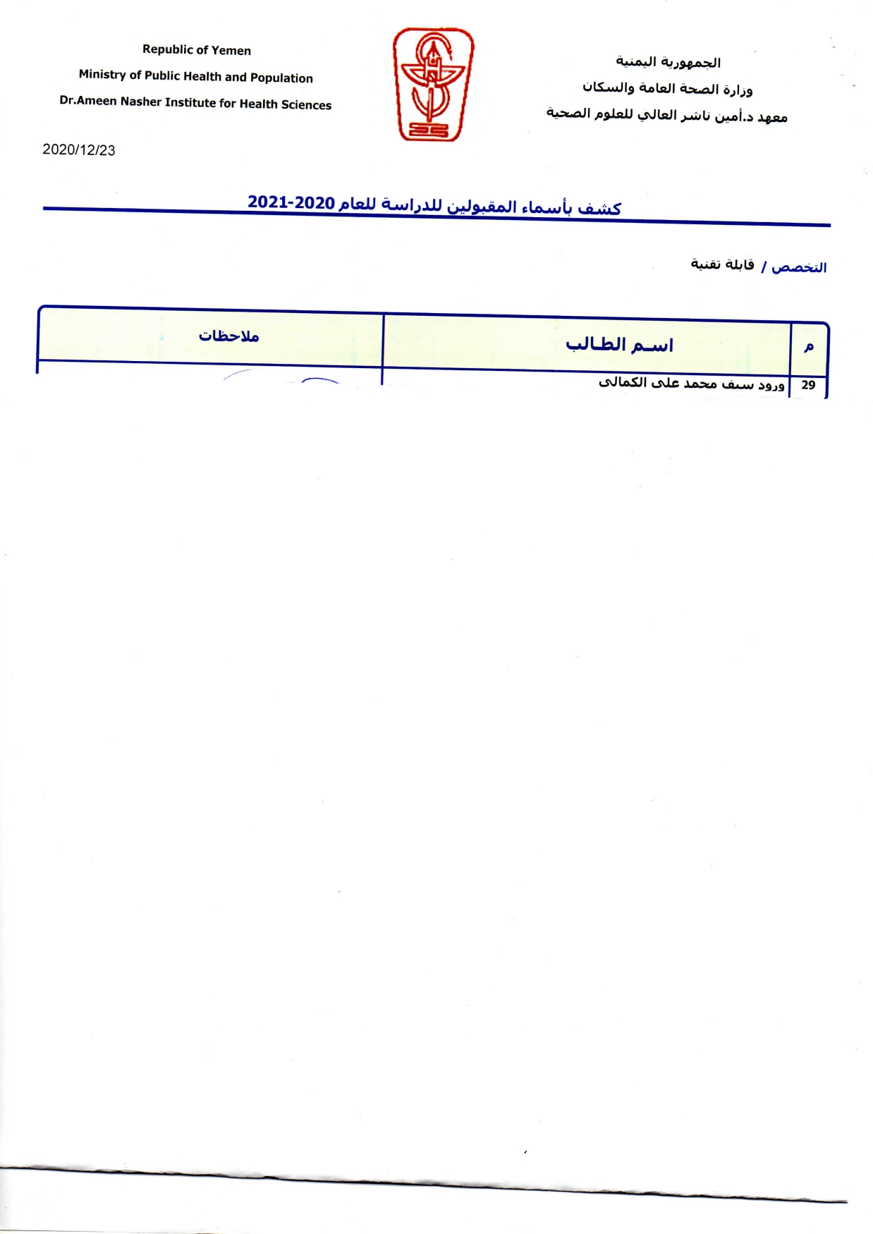 اضغط هنا و حمل بضيغة PDF نتائج القبول للعام الدراسي 2020-2021
