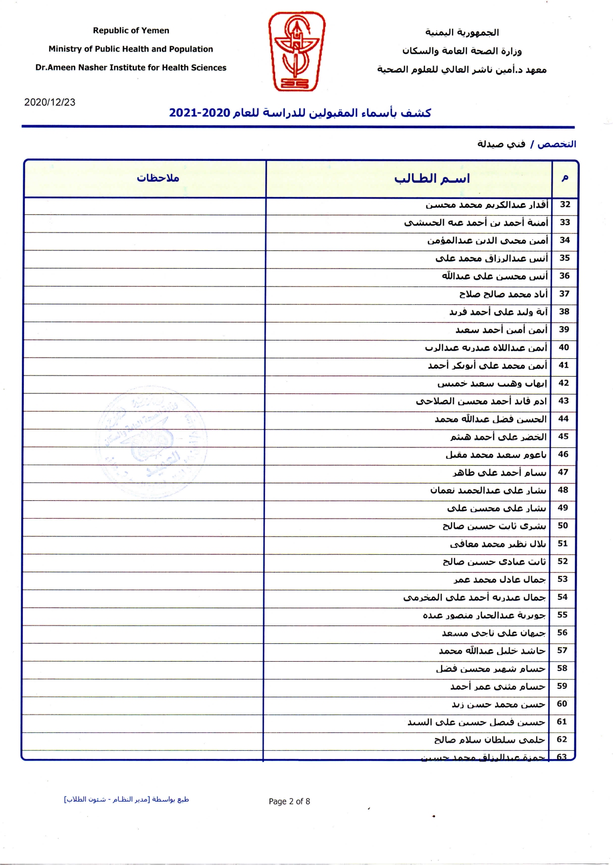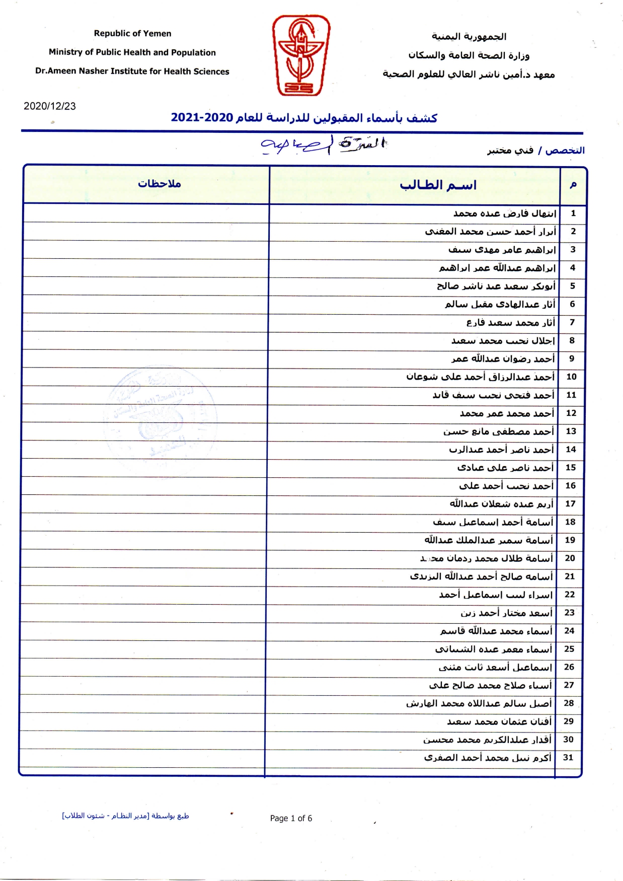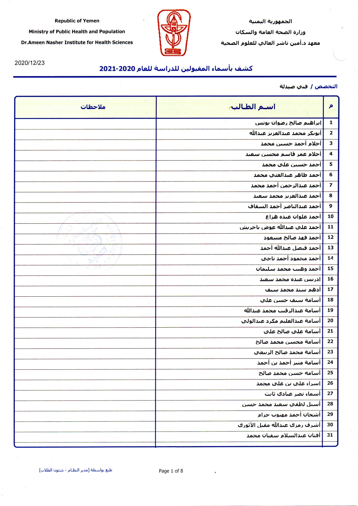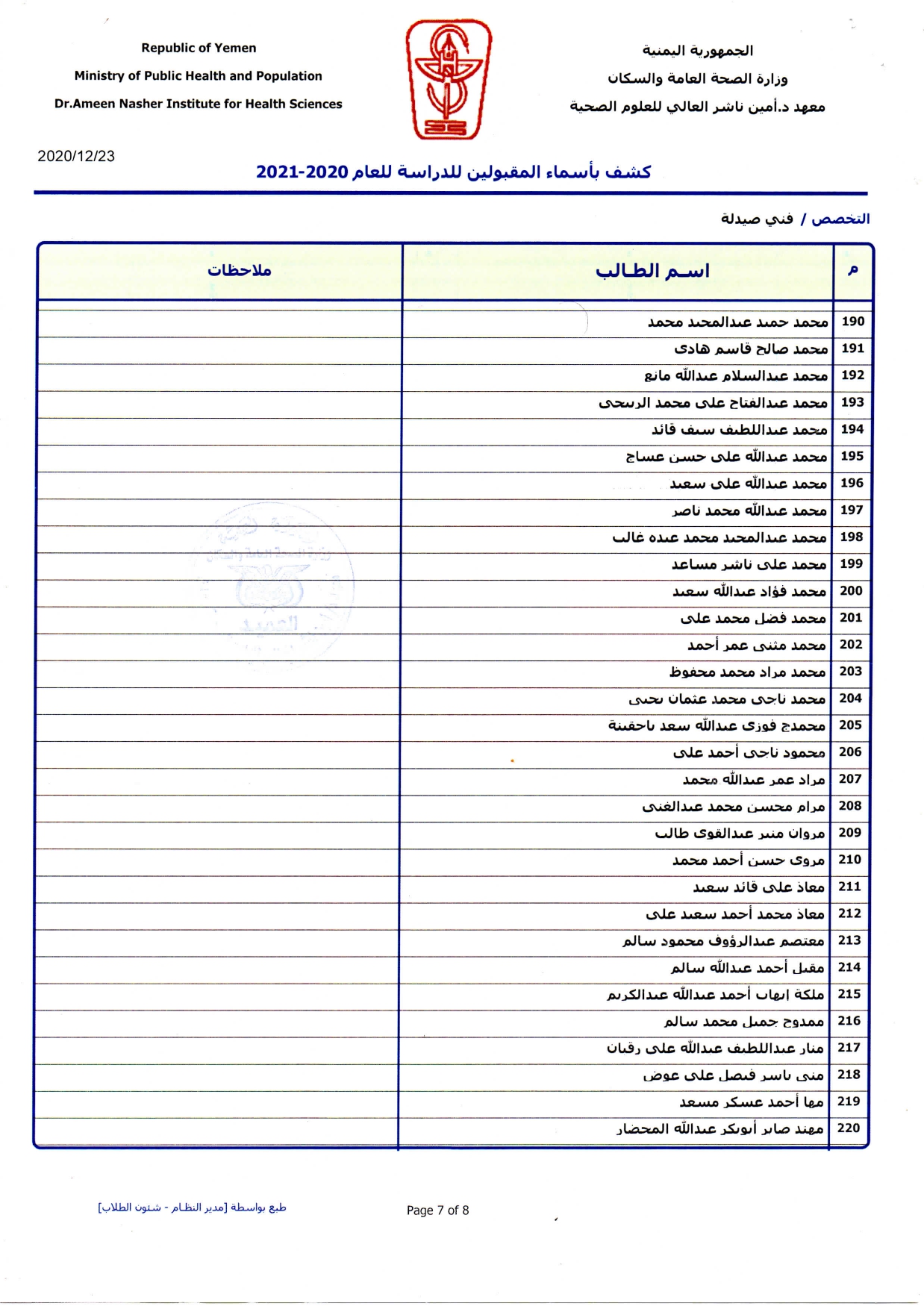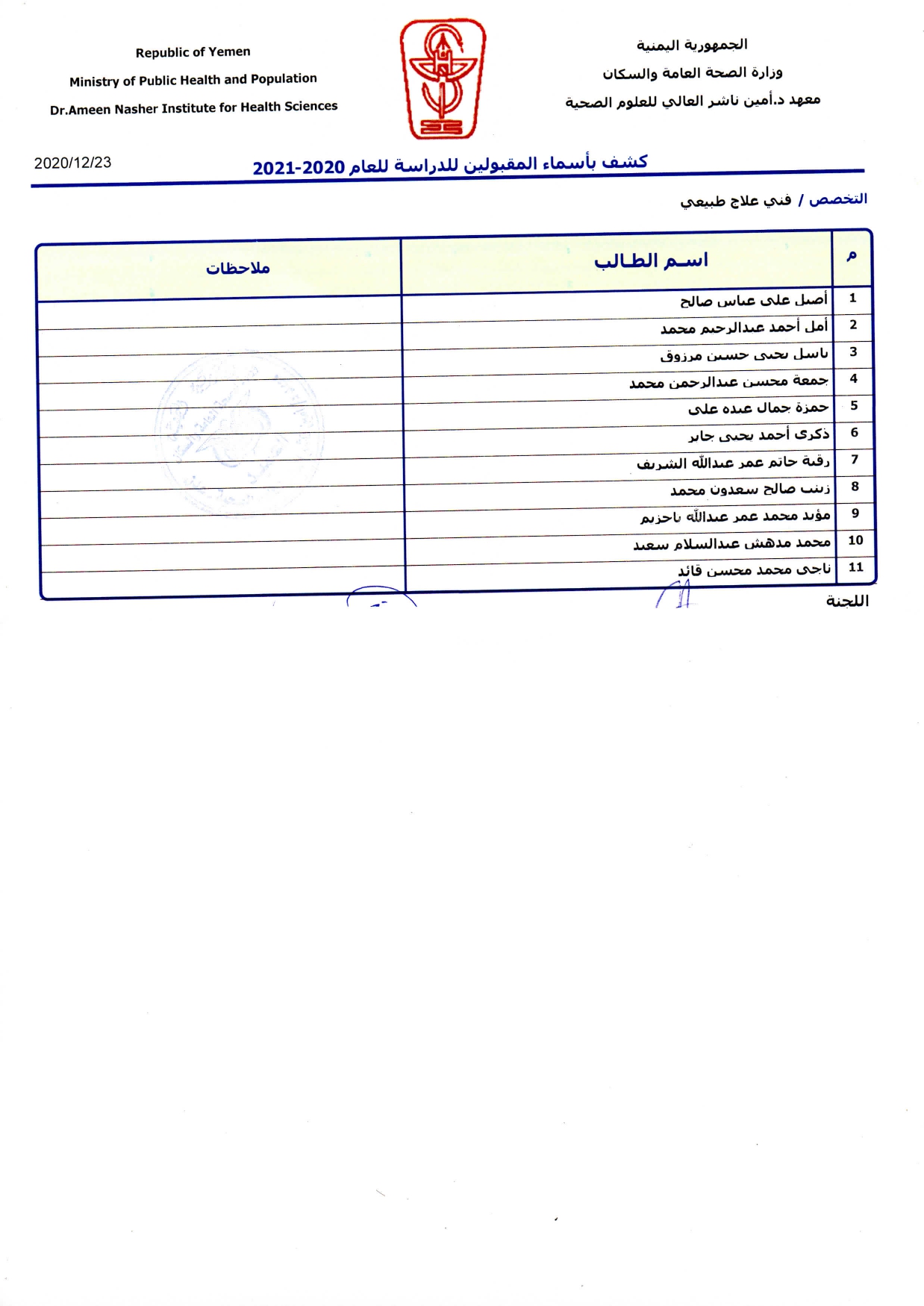 اضغط هنا و حمل بضيغة PDF نتائج القبول للعام الدراسي 2020-2021