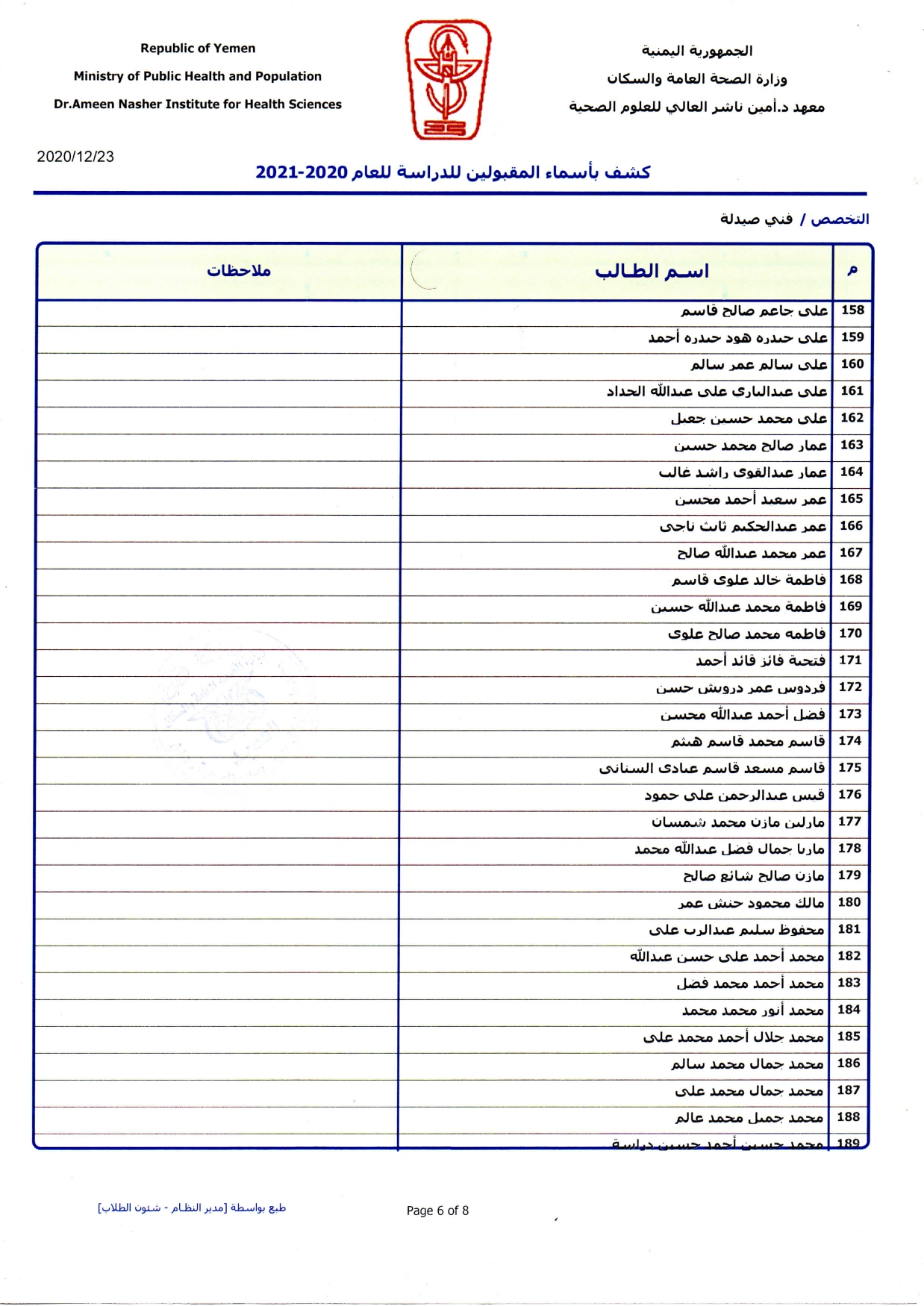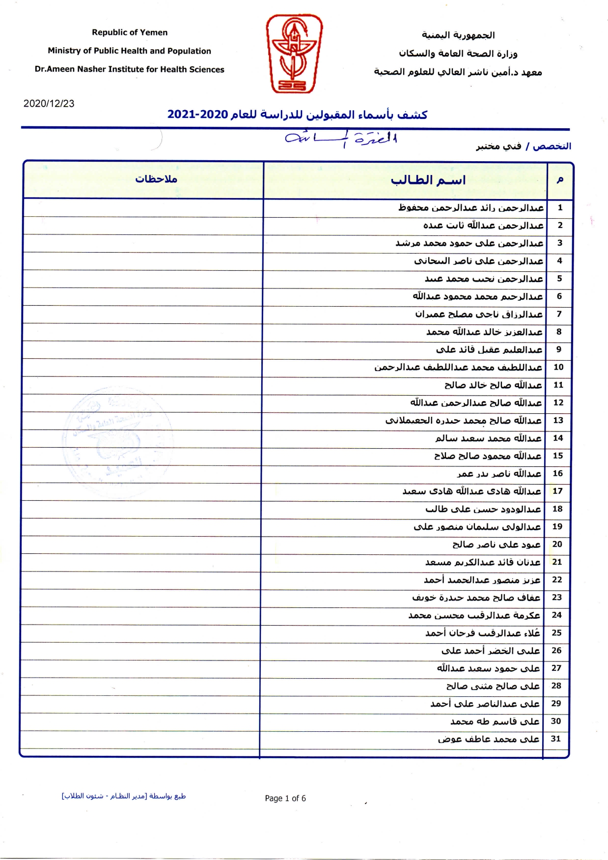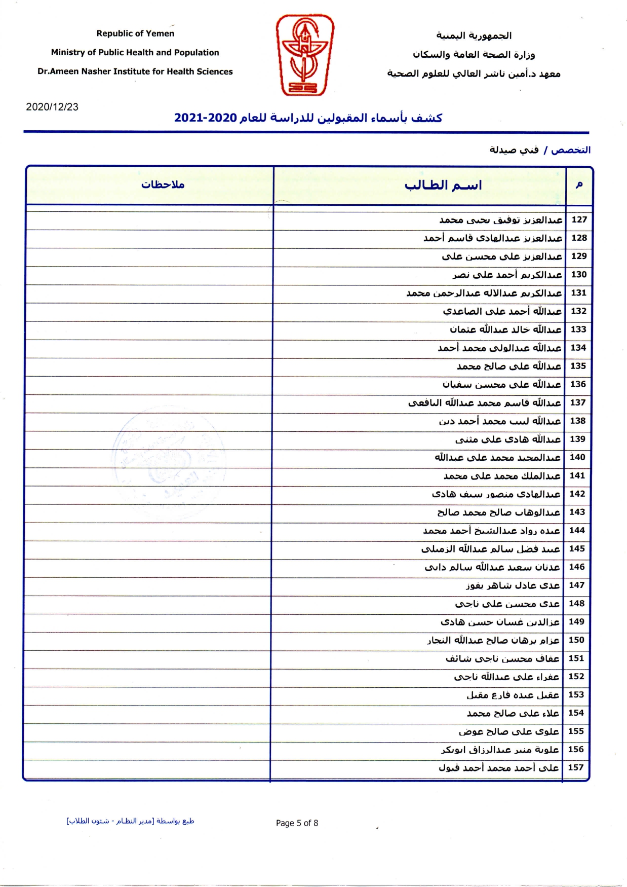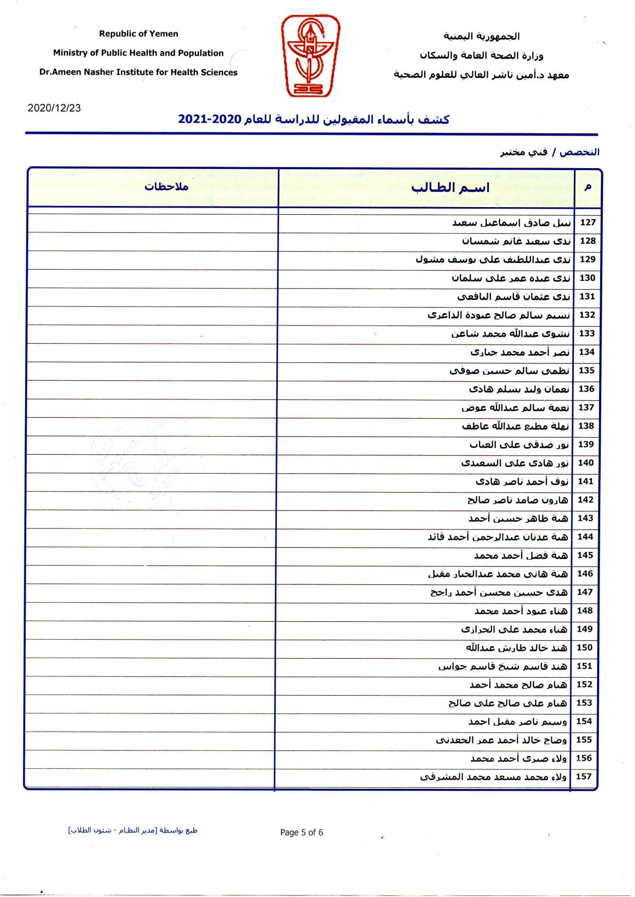 اضغط هنا و حمل بضيغة PDF نتائج القبول للعام الدراسي 2020-2021