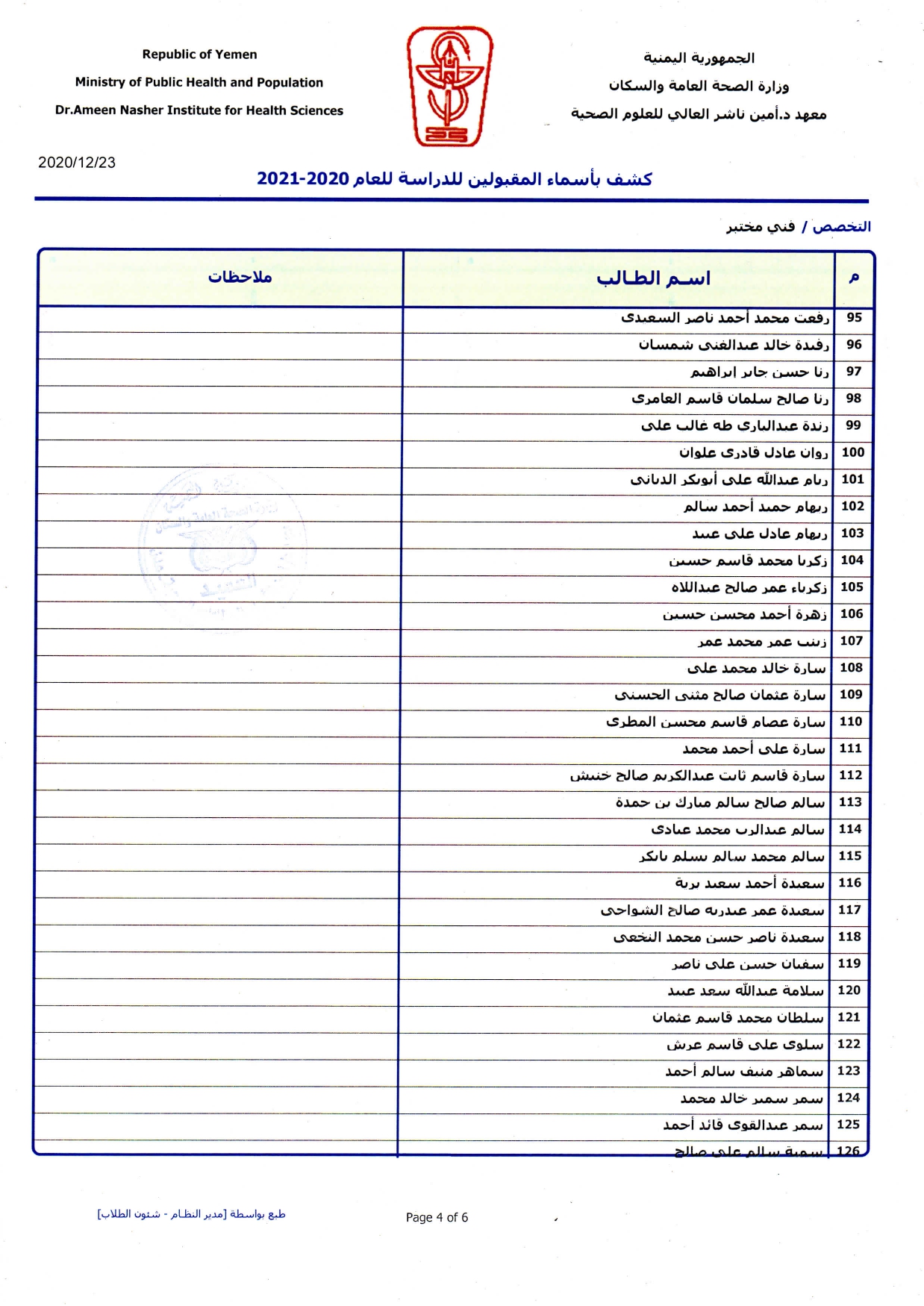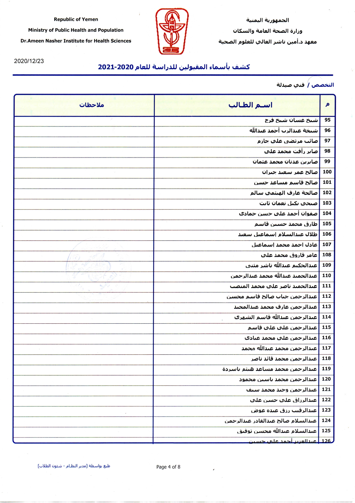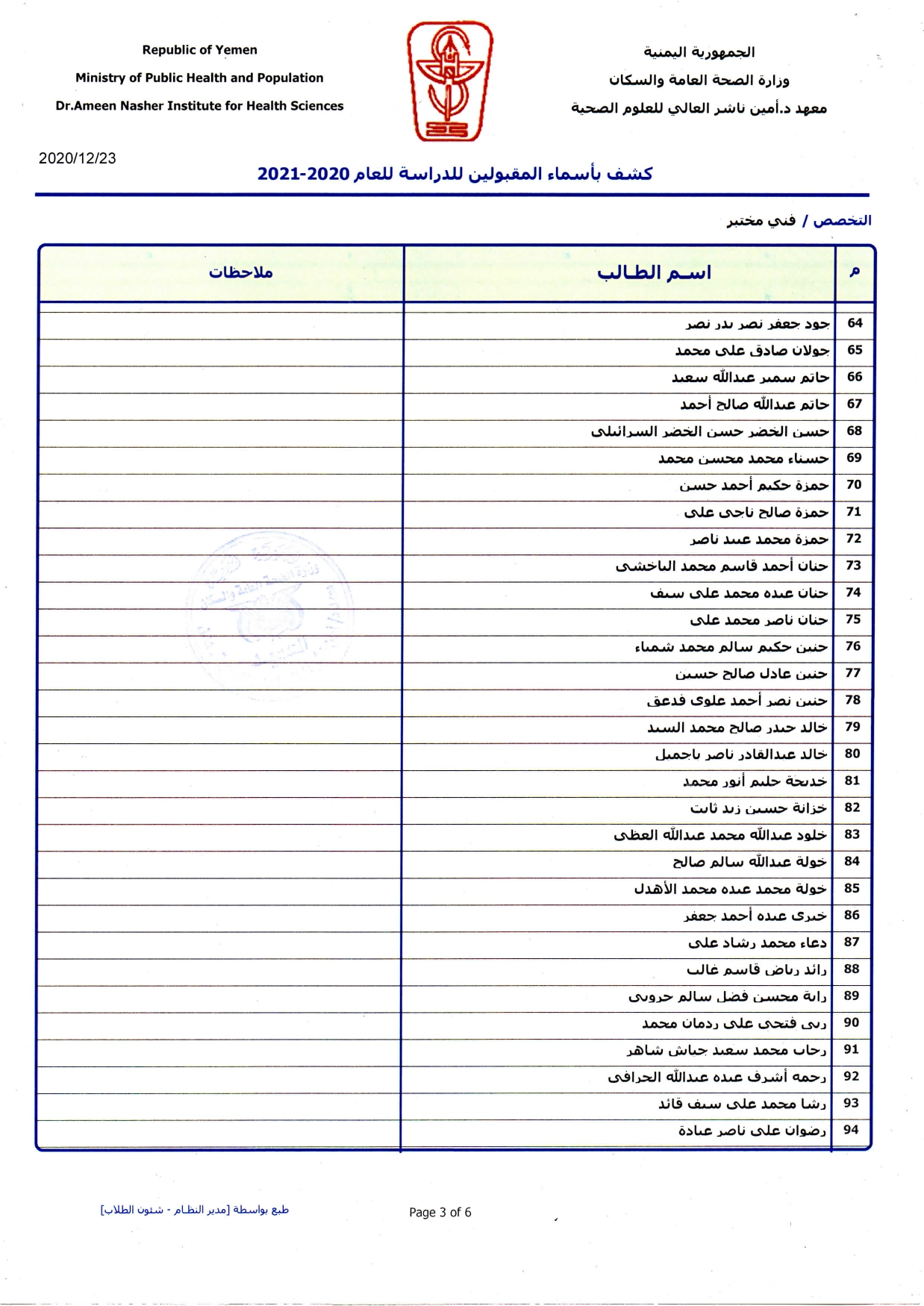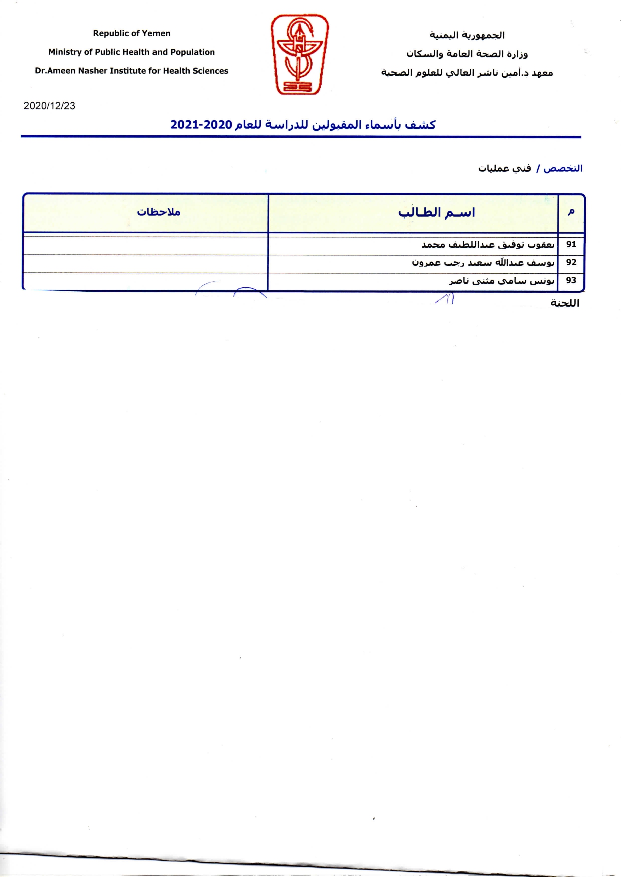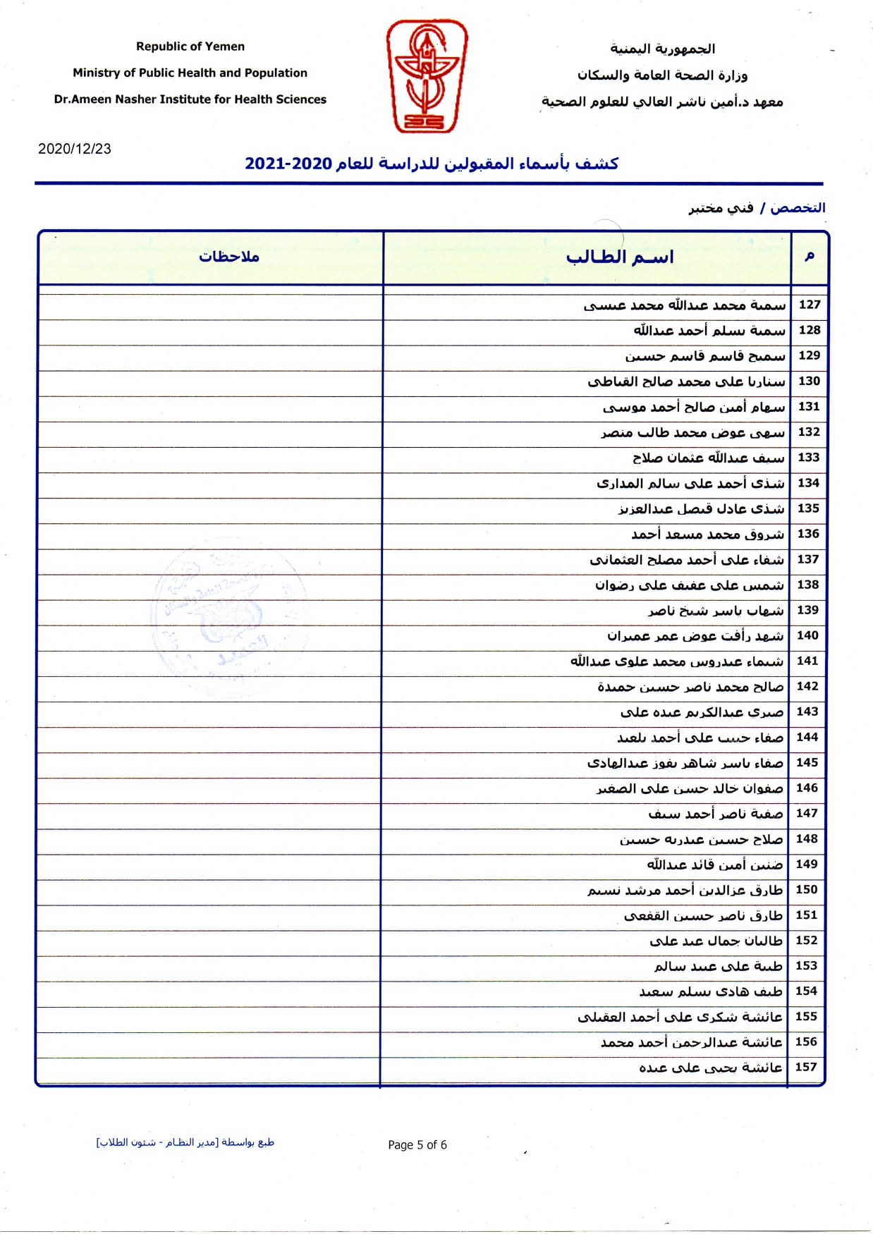 اضغط هنا و حمل بضيغة PDF نتائج القبول للعام الدراسي 2020-2021
