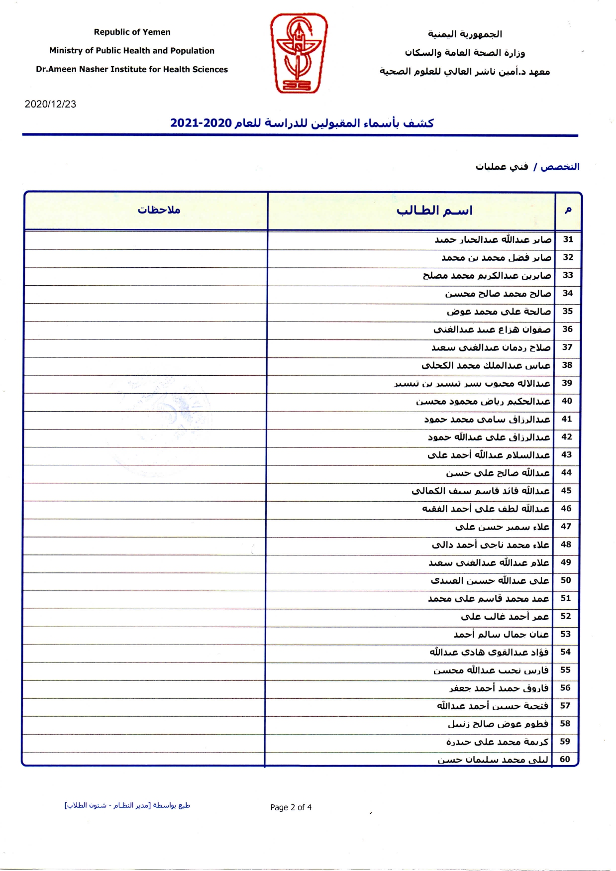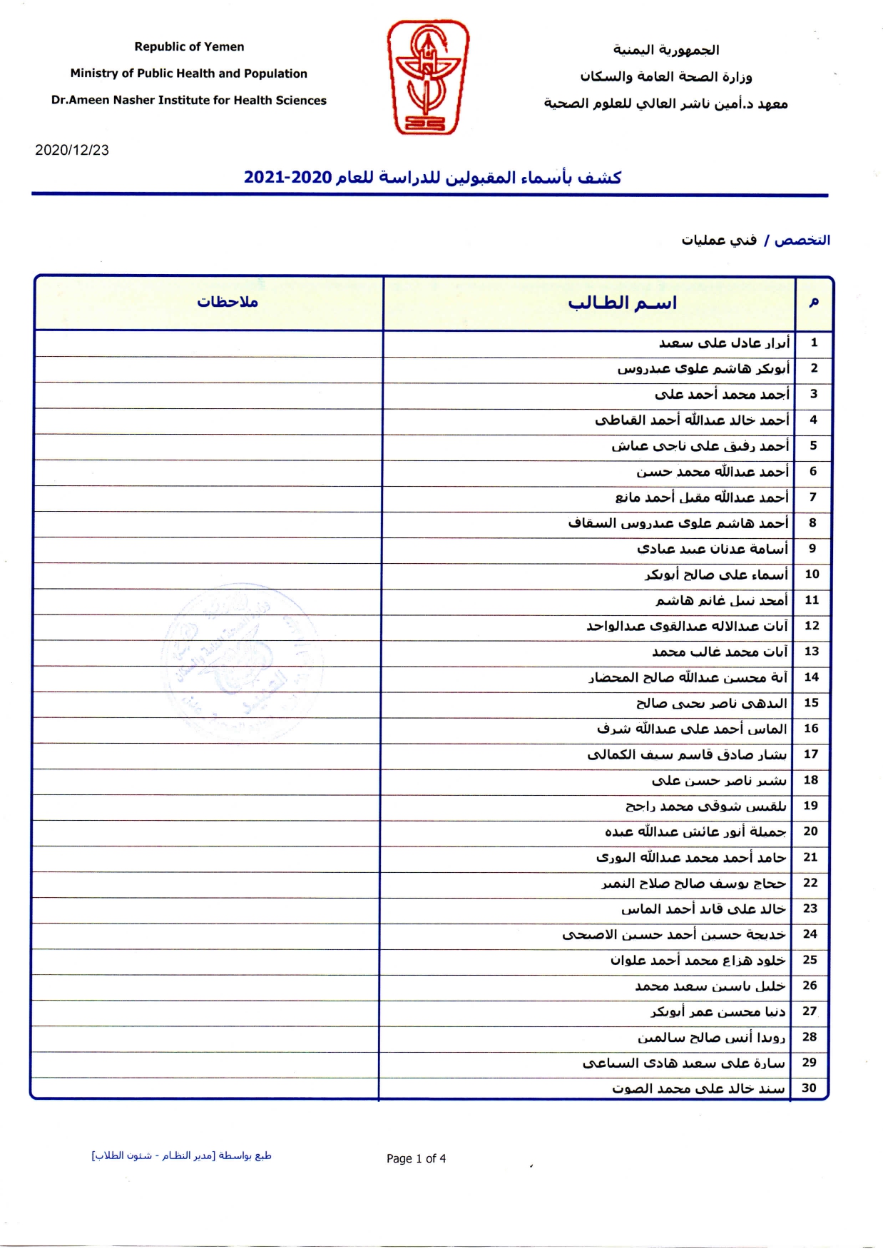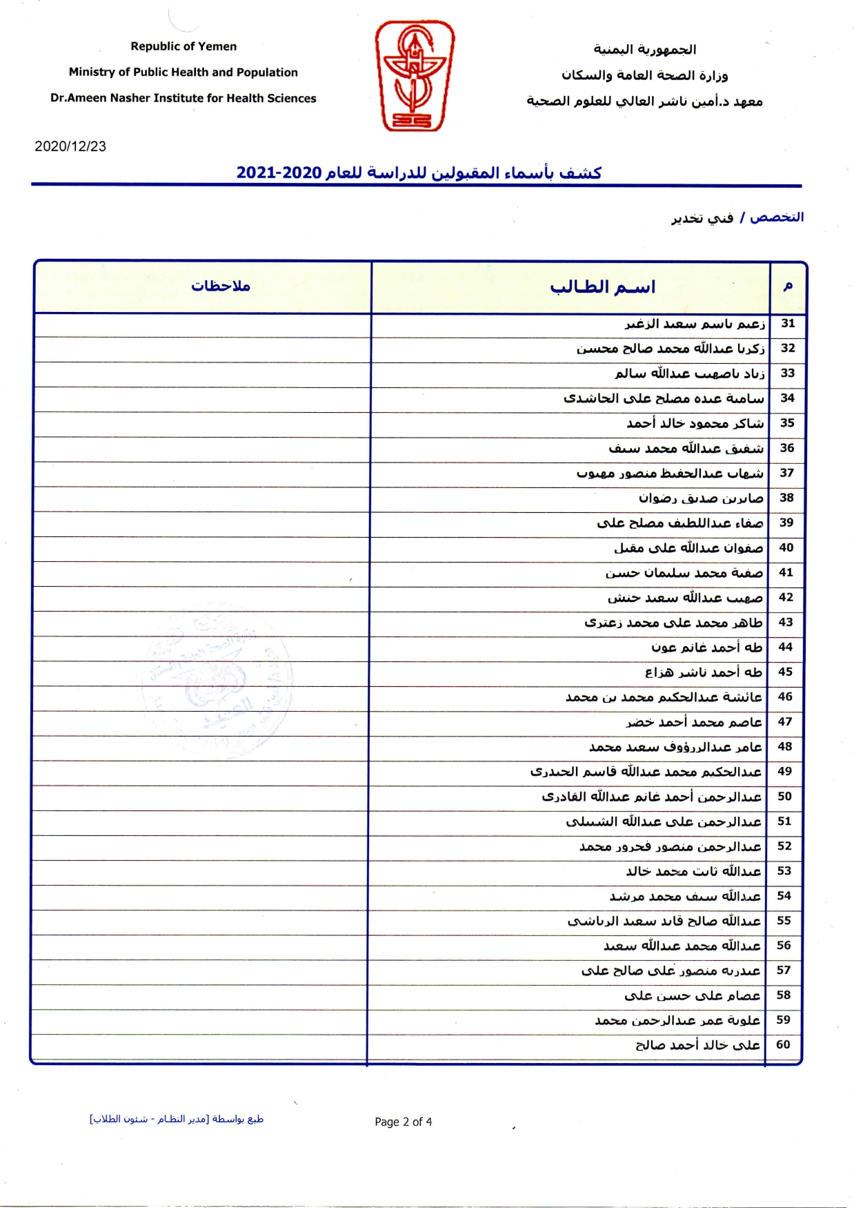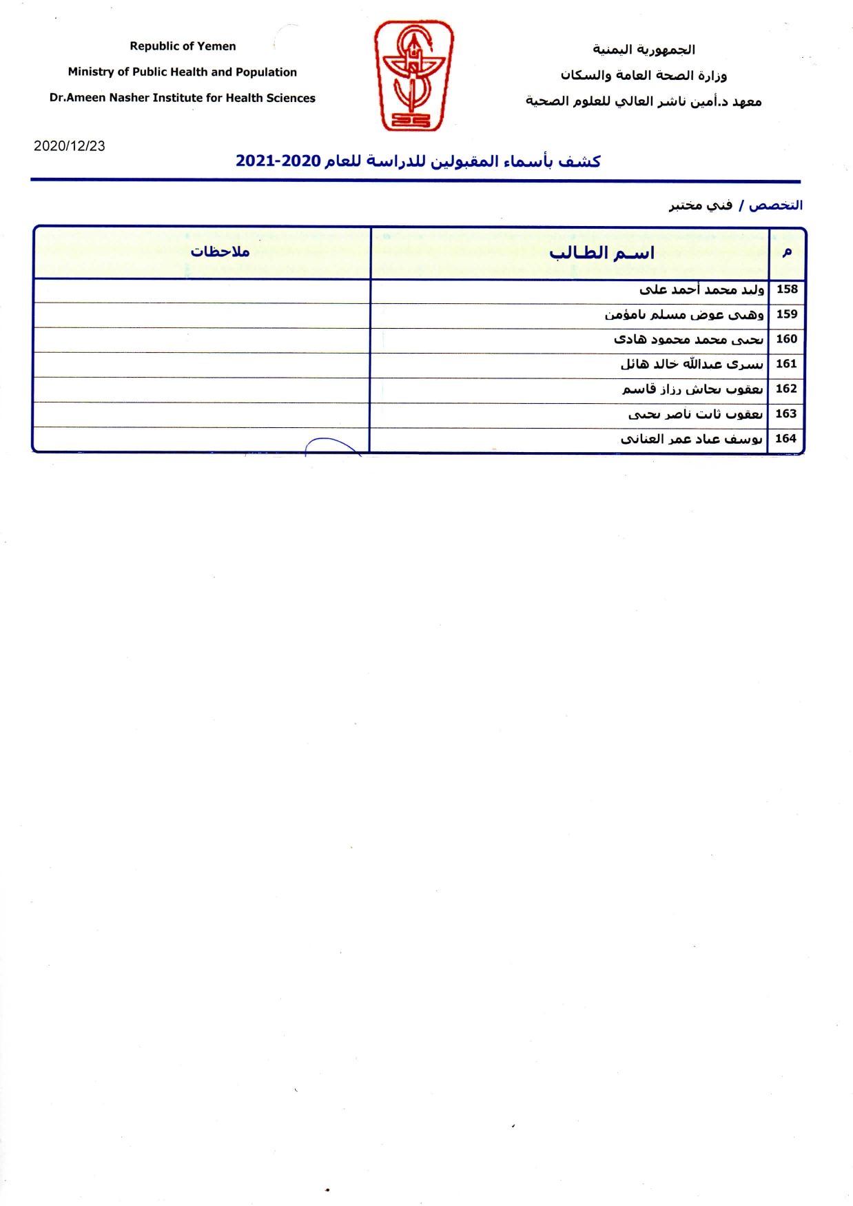 اضغط هنا و حمل بضيغة PDF نتائج القبول للعام الدراسي 2020-2021