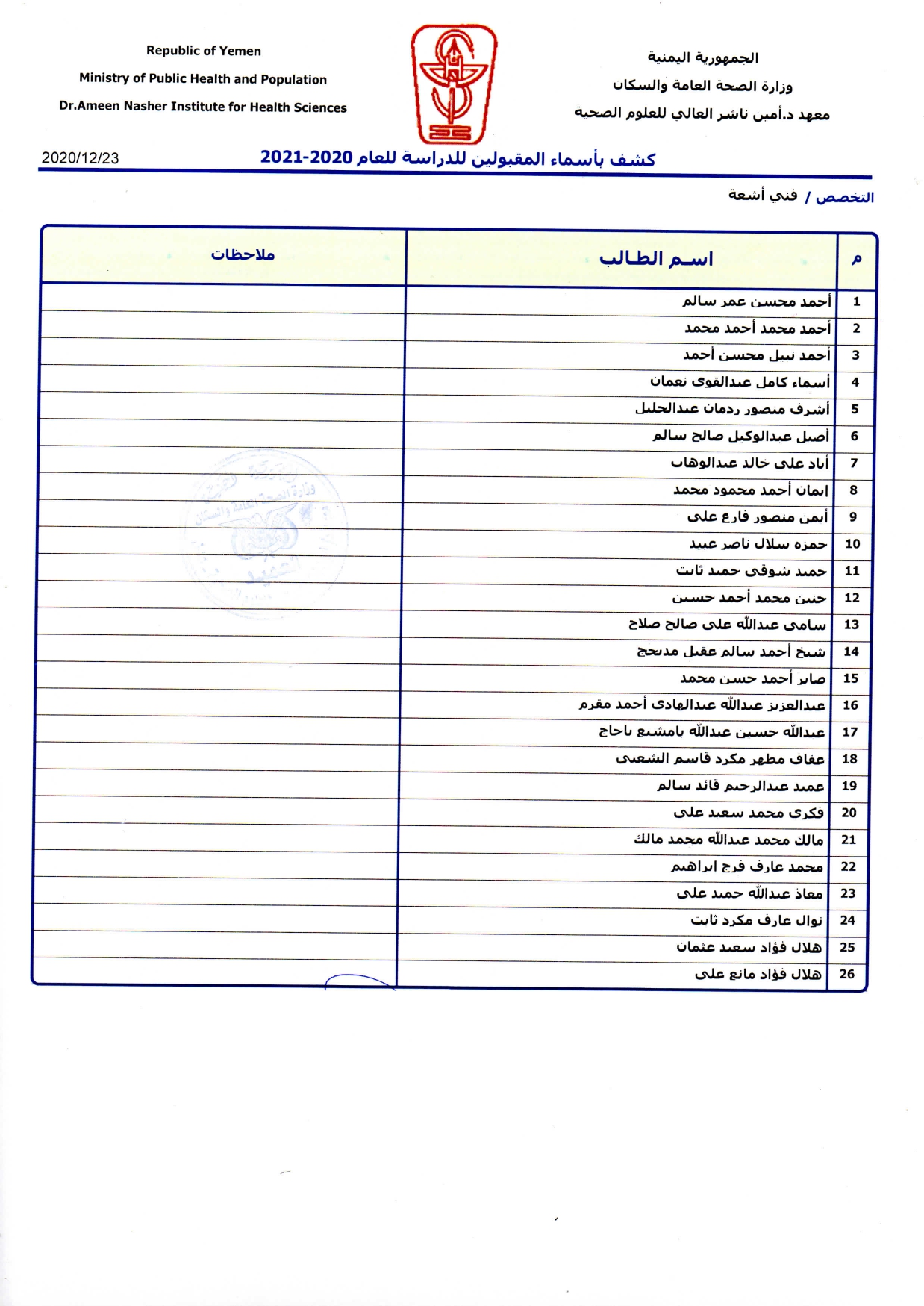 اعلان عن استكمال اجراءات القبول و التسجيل للمقبولين