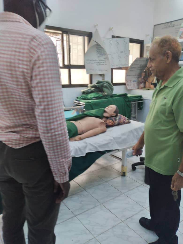 عقب ذلك أطلع فريق العمل على واقع معملي مهارات القبالة والتمريض في المعهد وأكد على اهتمامه في المساهمة بتطوير معمل المهارات الخاص ب القبالة لما له من أهمية حيوية في تأهيل وإعداد الدارسات في المعهد و ما يقمن به الخريجات من دور حيوي ومهم في العناية الصحية للمجتمع و بخاصة للأم والطفل بصورة فعالة وأمنة.