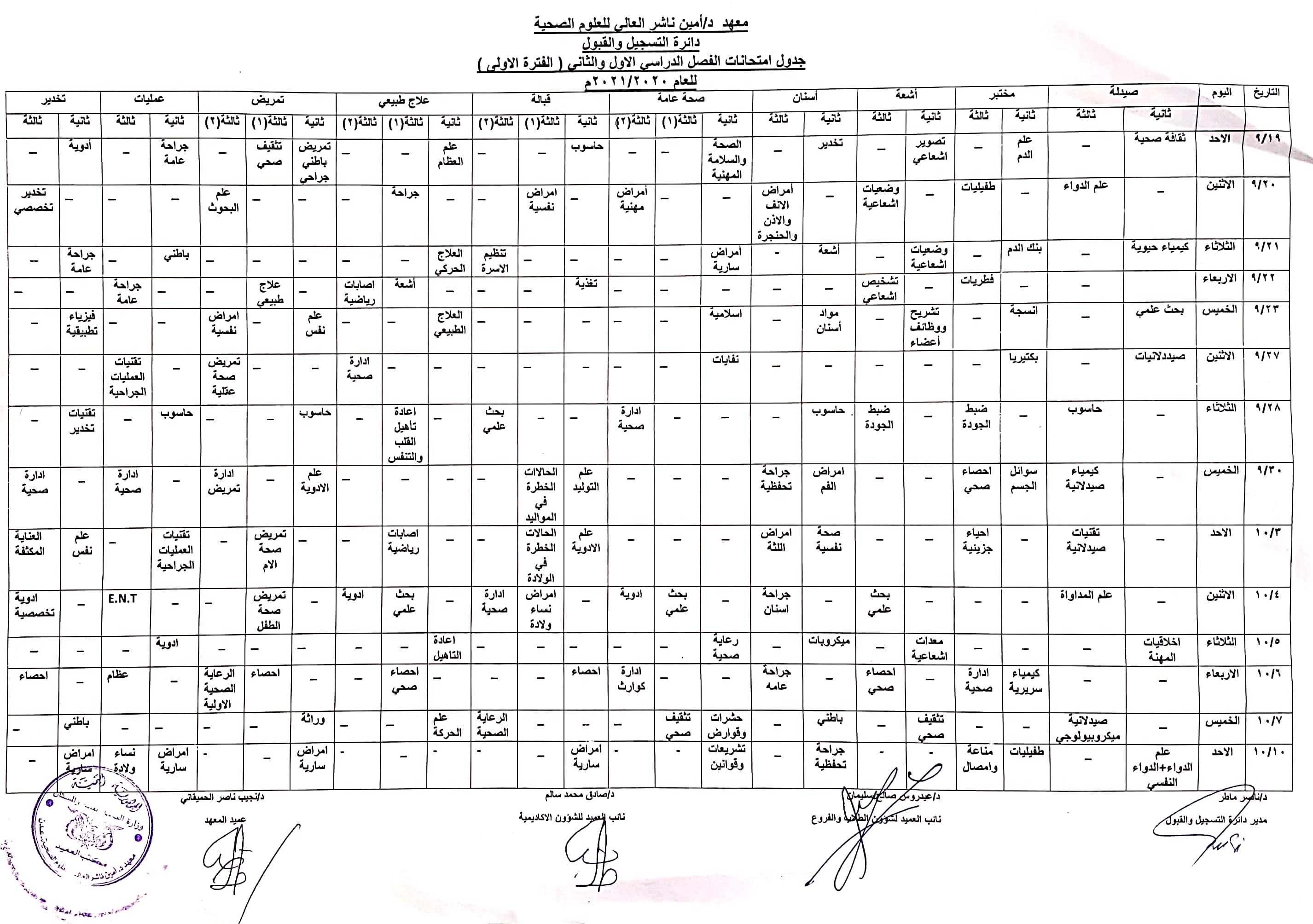 جدول الامتحانات للفصل الدراسي الأول ٢٠٢١/٢٠٢٠مجدول الامتحانات للفصل الدراسي الأول ٢٠٢١/٢٠٢٠م 2021-09-15zuhaer ahmad