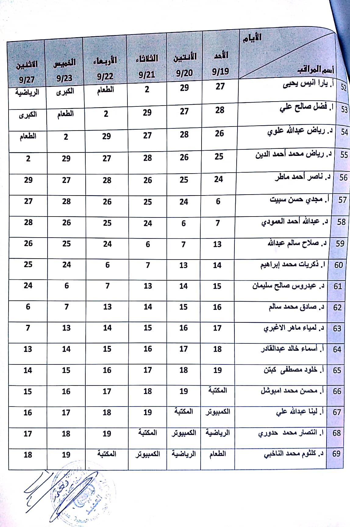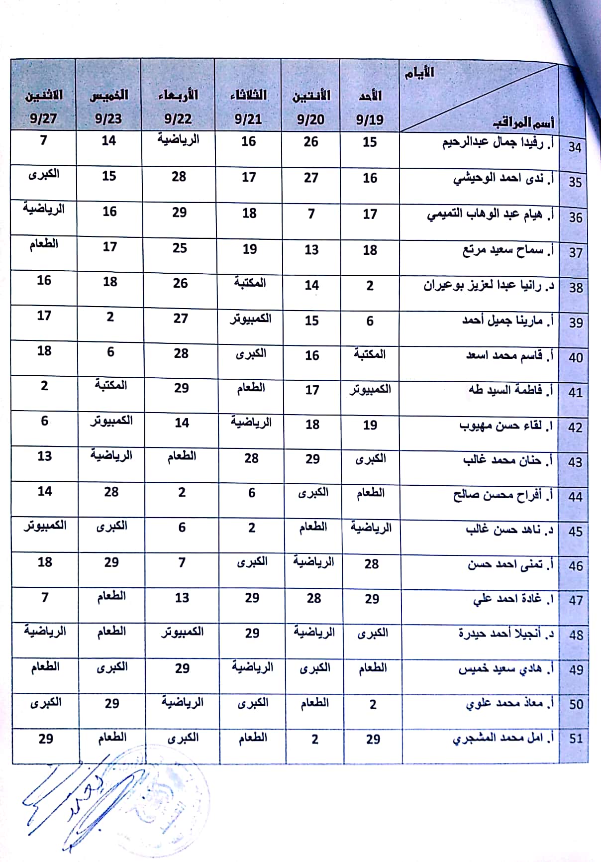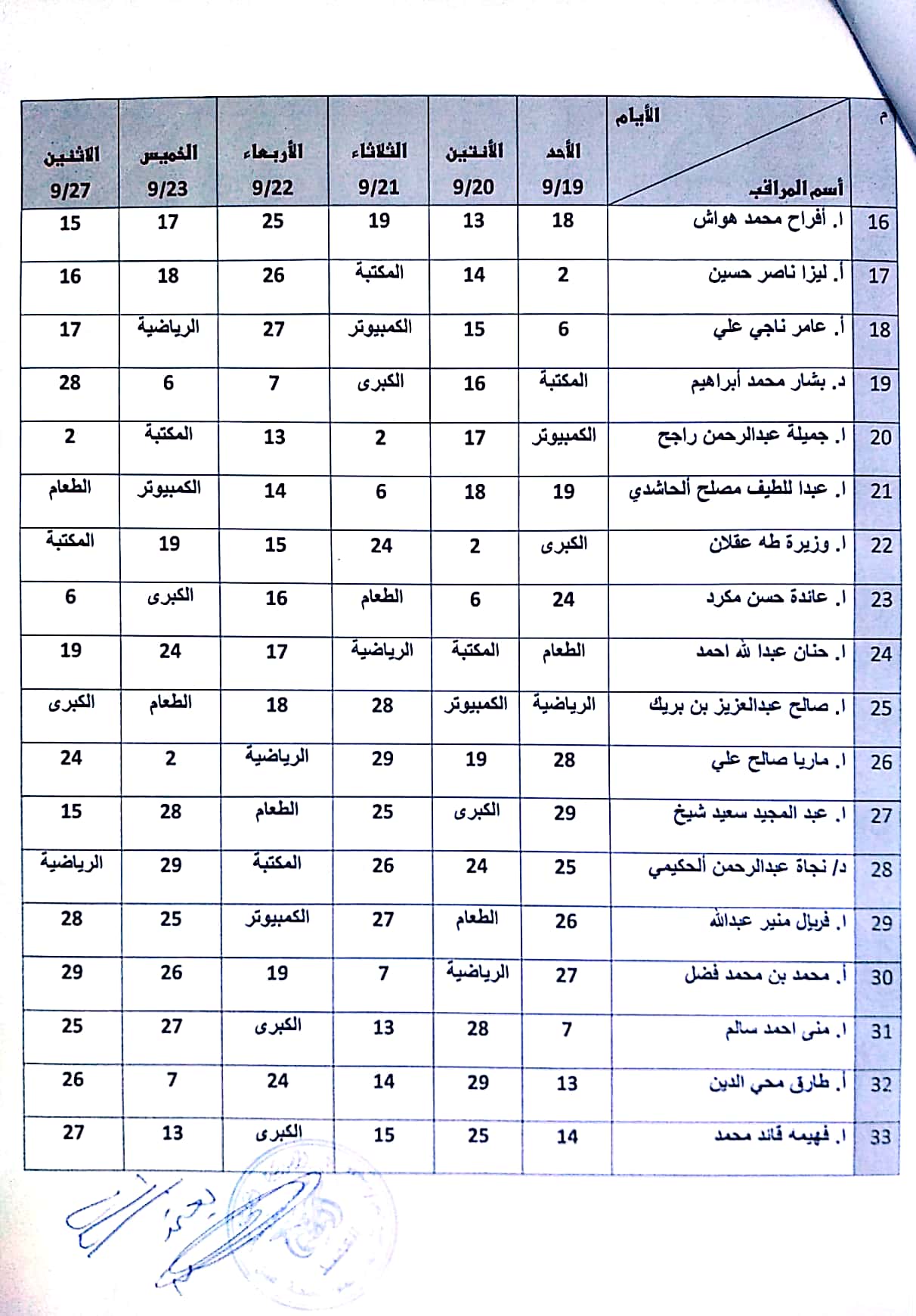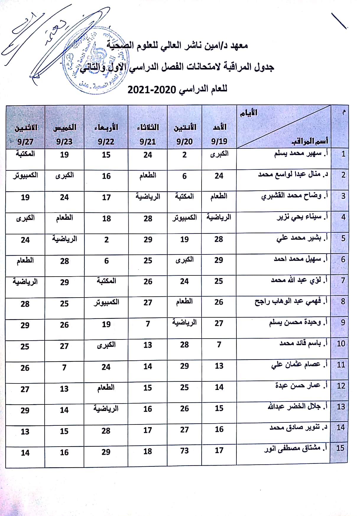 جدول مراقبي الامتحانات للفصل الاول للعام الدراسي ٢٠٢٠-٢٠٢١مجدول مراقبي الامتحانات للفصل الأول للعام ٢٠٢٠-٢٠٢١م 2021-09-17zuhaer ahmad