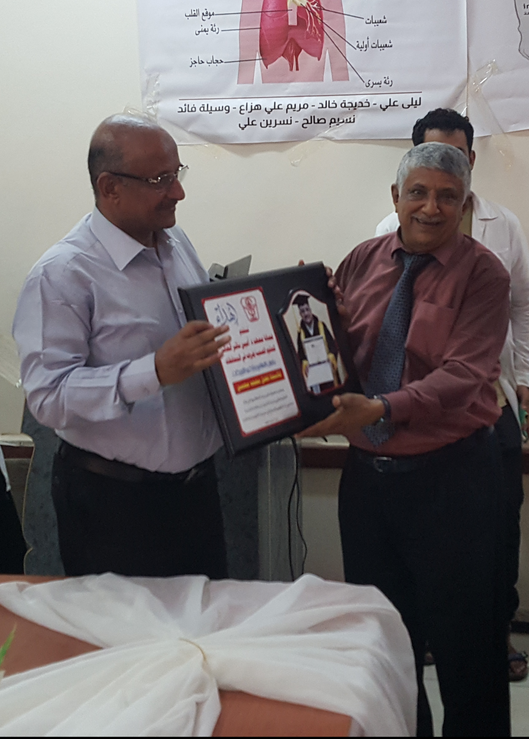 بعد ذلك سلم عميد المعهد المحتفى به الدكتور فضل محمد محسن درع تذكاري من المعهد تقديرا لجهودة التي بذلها من مواقع قيادية عدة تقلدها في المعهد