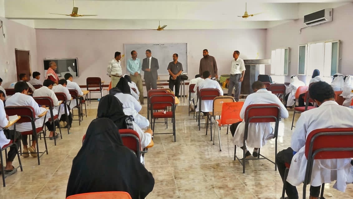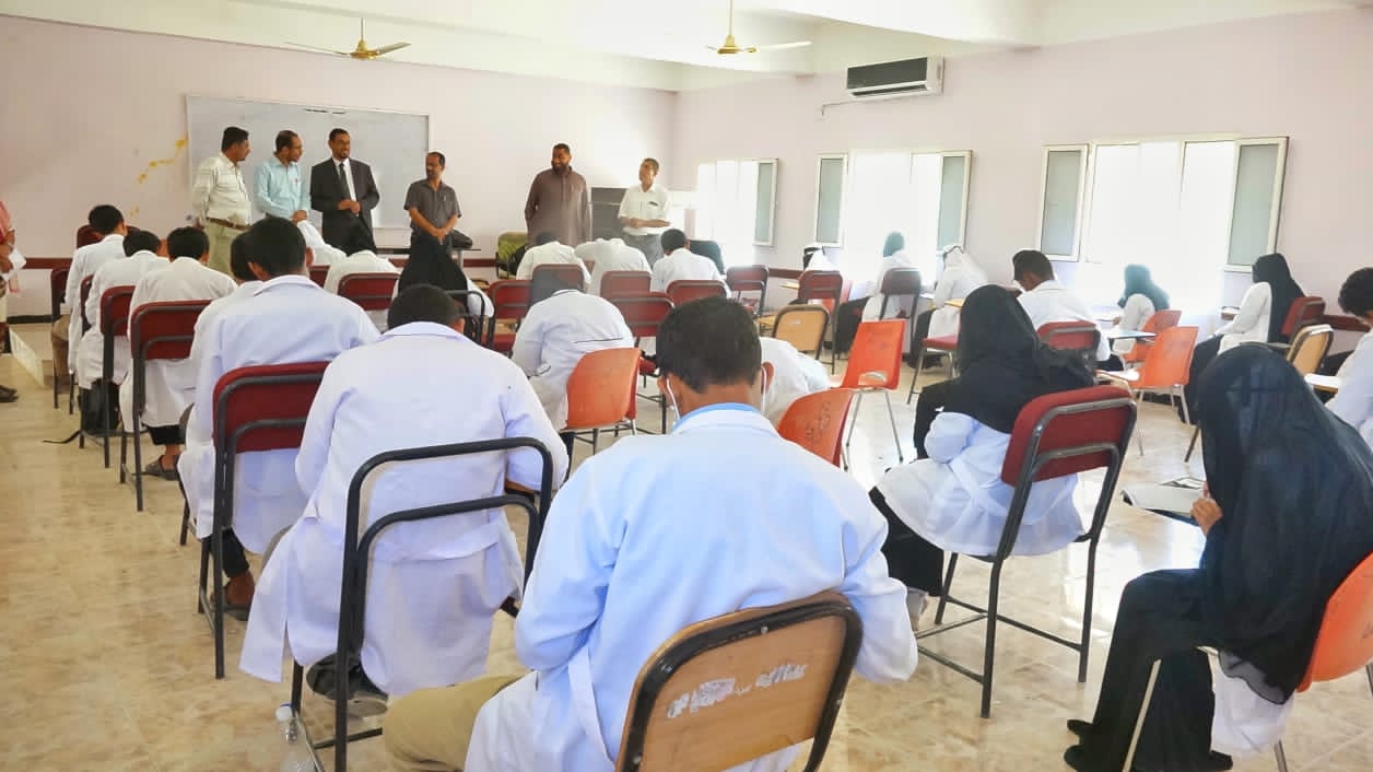 تفقد وكيل محافظة شبوة الدكتور عبدالقوي لمروق ومدير عام مكتب الصحة والسكان بالمحافظة الدكتور علي الذيب اليوم ومعهما مدير معهد الدكتور مقلم العالي للعلوم الصحية بمحافظة شبوة الاستاذ سامي الحاج سير الامتحانات النهائية للعام الدراسي 2022/2021م بالمعهد والتي دشنت يوم أمس ويتقدم لها خمسمائة واثنا عشر طالب وطالبة موزعين على ثلاثة مستويات دراسية في تخصصات مساعد طبيب وفني مختبر وقابلات مجتمع .