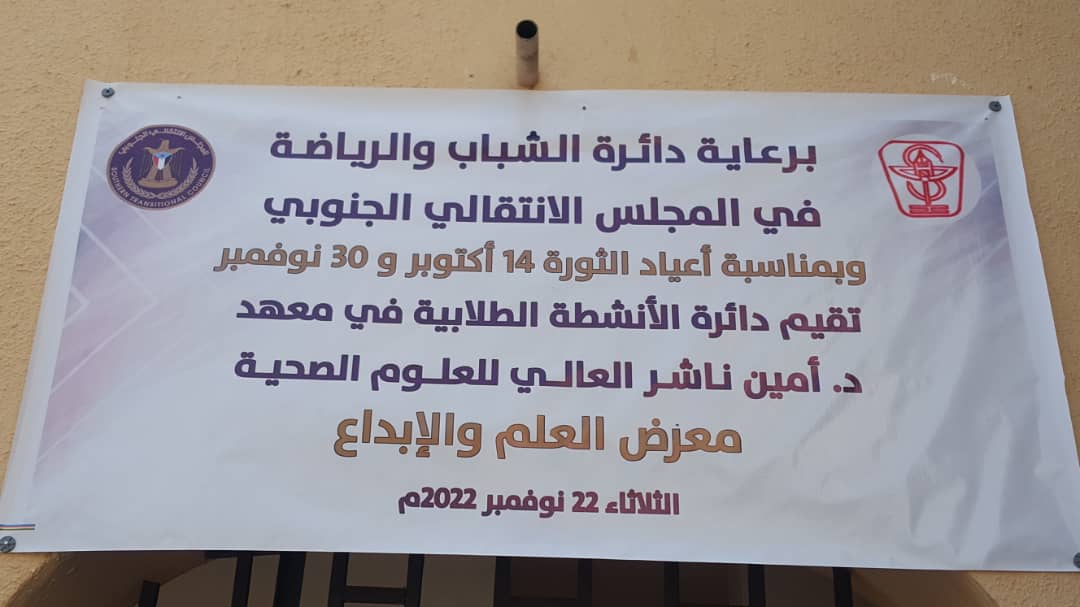 ويأتي المعرض ضمن تشجيع دائرة الشباب والرياضة في المجلس الانتقالي الجنوبي للشباب والطلاب والموهوبين ومجالات العلم والإبداع، واهتمام عمادة ودائرة الانشطة الطلابية في معهد د. أمين ناشر الجهة المنظمة للحدث الطلابي، الذي شهد أيضاً اقامة طبق خيري يعود ريعه لصالح دار الايتام. حضر المعرض عدد من نواب العميد و رئيس قسم الطلاب في دائرة الشباب الاستاذ جمال محسن الردفاني، و مدير دائرة الأنشطة في المعهد أ. عمار الميوني، و عدد من الاكاديميين.