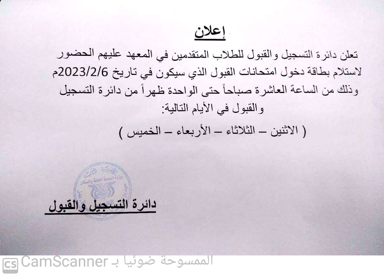 دائرة القبول والتسجيل تدعوا المتقدمين لاداء امتحان القبول للحضور لاستلام بطائق دخول الامتحاندائرة القبول والتسجيل تدعوا المتقدمين لاداء امتحان القبول للحضور لاستلام بطائق دخول الامتحان 2023-01-30zuhaer ahmad