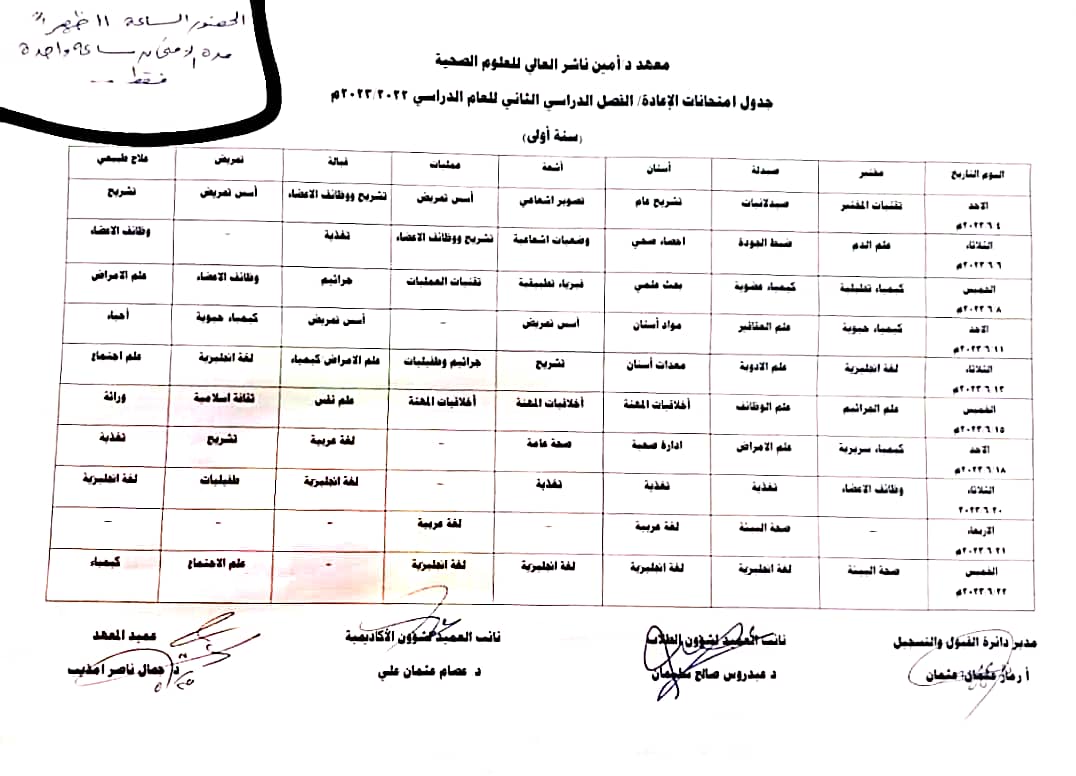 جدول امتحانات الاعادة للفصل الثاني للعام الدراسي ٢٠٢٢ / ٢٠٢٣م