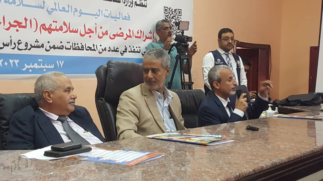 حضر اليوم بالإنابة د. فضل محمد محسن في كلية الطب البشري الدعوة التي التي وجهتها وزارة الصحة العامة والسكان للعميد د. جمال ناصر امذيب الذي يقوم بجولة بفروع المعهد في المحافظات الشرقية ، اليوم العالمي لسلامة المرضى و تحت شعار “اشراك المرضى من اجل سلامتهم لتحقيق الجراحة الامنه و الولادة المأمونه بالشراكة مع منظمة الصحة العالمية ضمن اطار مشروع رأس المال البشري الطارئ”.