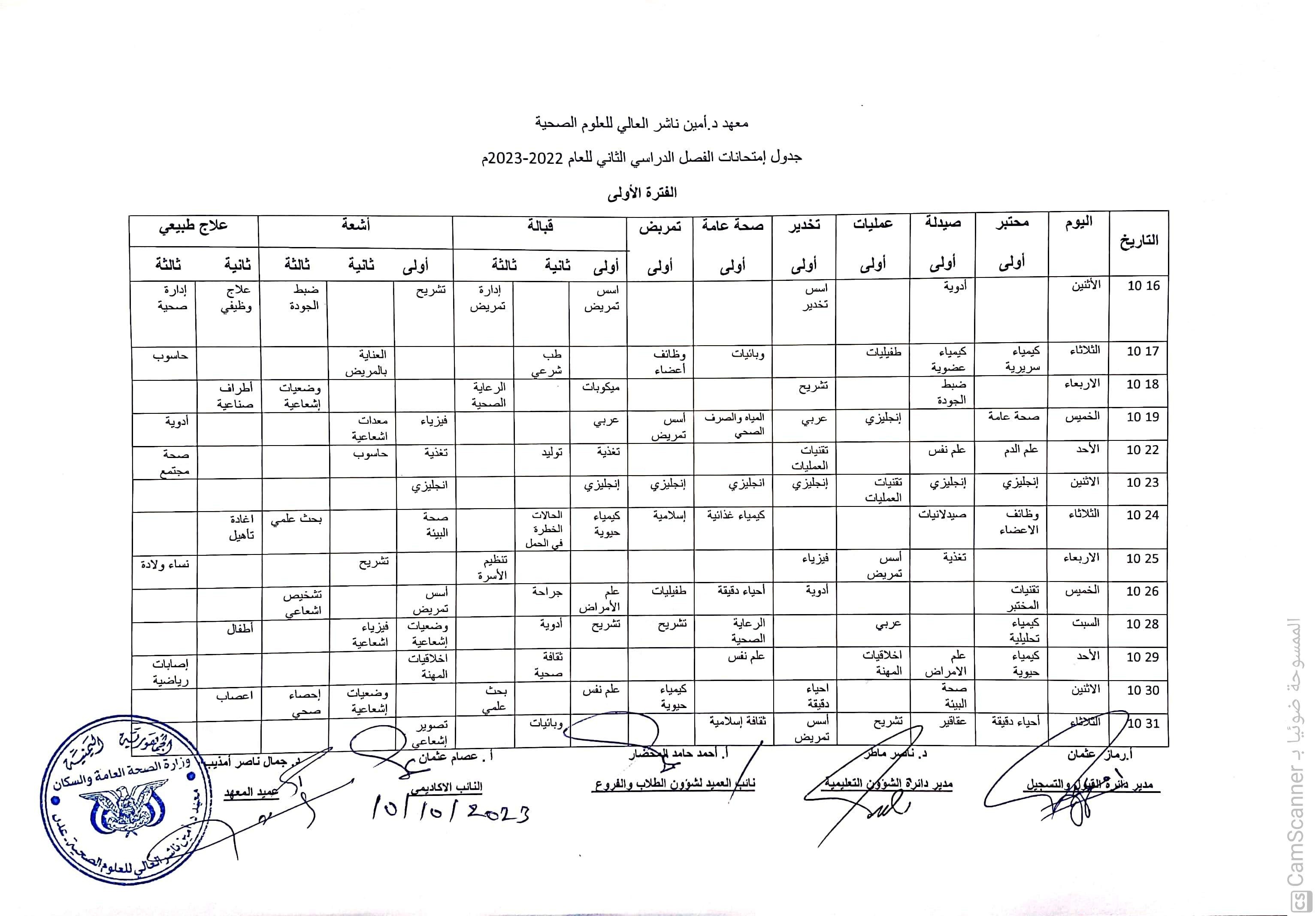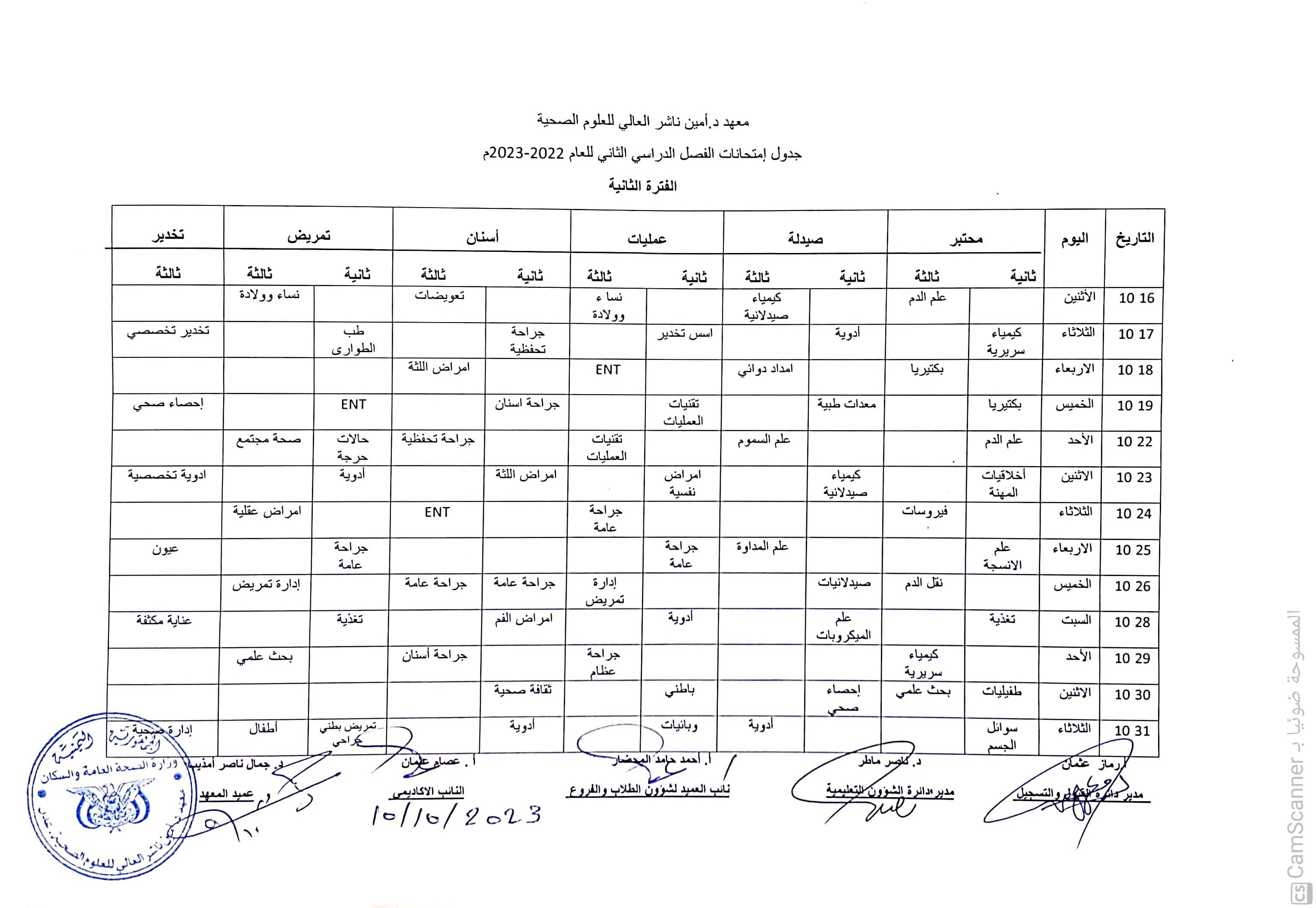 جدول امتحانات الفصل الثاني للعام الدراسي ٢٠٢٢ / ٢٠٢٣مجدول امتحانات الفصل الثاني للعام الدراسي ٢٠٢٢ / ٢٠٢٣ 2023-10-10zuhaer ahmad