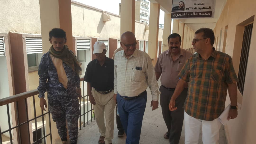 وقد رافق العميد بجولته التفقدية د. فضل محمد محسن النائب الأول للعميد و أ. عصام عثمان نائب العميد للشئون الاكاديمية و أ. أحمد المحضار نائب العميد لشئون الطلاب والفروع و أ. صالح قاسم نائب العميد للشئون الإدارية والمالية و أ. ناصر ماطر مدير دائرة الشئون التعليمية و أ. احمد عبدربه مدير دائرة الخدمات و أ. زهير أحمد الخضر مدير دائرة الاعلام.