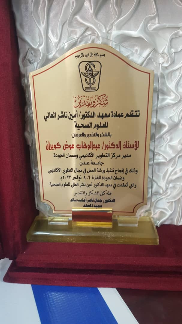 و قد شارك في التدريب خلال اليومين الماضيين أ.د. ألطاف رمضان إبراهيم رئيس قسم التقويم وضمان الجودة في مركز تطوير الأداء الأكاديمي/ جامعة عدن.