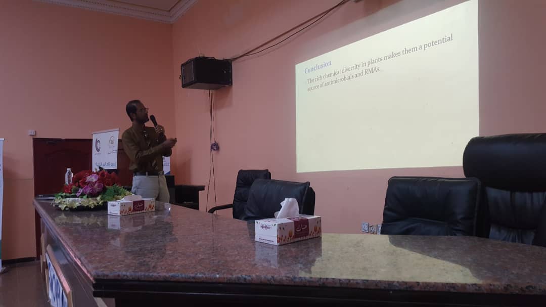 فيما تناولت المحاضرة الثانية لمدير إدارة الجودة الدكتورة ايناس عقلان الميكروبات المقاومة لمضاداتها وتناولت المحاضرة الثالثة لرئيس قسم العقاقير بكلية الصيدلة بجامعة عدن الدكتور عبدالرحمن الروشان إعادة تدوير المضادات الحيوية عن طريق كسر مقاومة البكتيريا