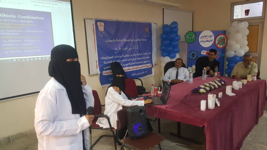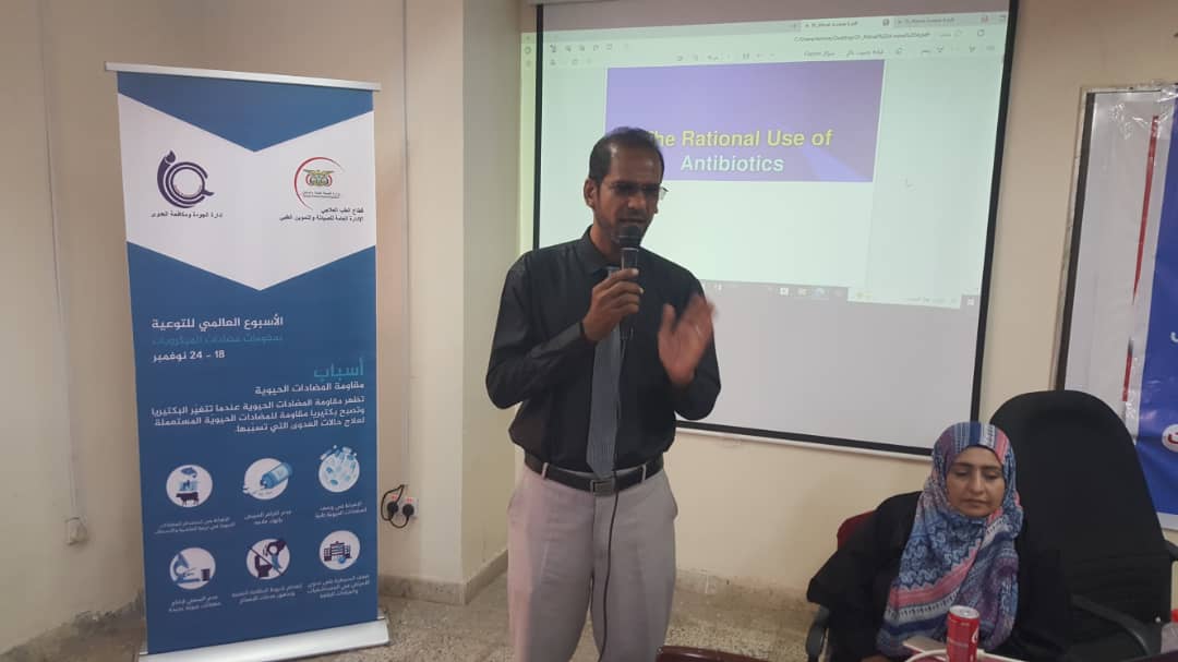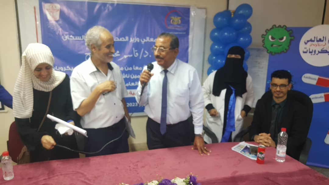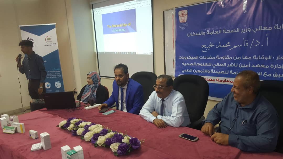 و قد حضر د/ عبدالله دحان نائب وزير الصحة العامة و السكان و عبر عن مدى خطورة استخدام المضادات الحيوية دون جرعات محددة و دقيقة تكفل فعالية الدواء و عدم ظهور مقاومة للمضاد الحيوي من خلال المعاينة الاكلينيكية و وزن المريض ، كما أوضح اهتمام الوزارة بهذا الموضوع الذي اصبح ظاهرة متزايده خصوصا في الدول النامية و دعى الى التفاعل مع أسبوع مقاومة الميكروبات للمضادات الحيوية