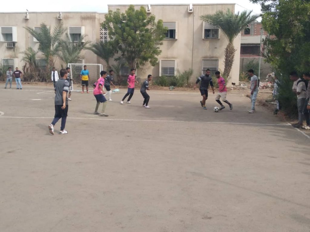 في هذا الاسبوع بدأت فعالية بطولة كرة القدم الخماسية بمناسبة الذكرى الرابعة و الخمسين للتأسيس و بأشراف من مسئول النشاط الرياضي الاستاذ / ناصر ماطر مدير دائرة الشئون التعليمية بمباريات على النحو التالي: