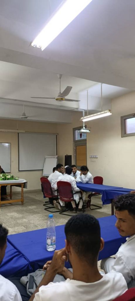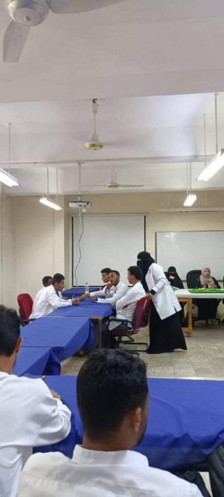 و تحت اشراف لجنة مكونه من الأستاذ/ أحمد المحضار نائب العميد لشئون الطلاب و الفروع و د/ كلثوم الناخبي مديرة دائرة شئون المرأه و الأستاذة/ مارينا جميل أحمد والأستاذة شهد محمد علي و الأستاذ /معاذ محمد علوي. ففي يوم الاحد كان التنافس شديد بين قسمي التمريض و التخدير و بدعم من رئاسة القسمين الاستاذة منى أحمد سالم رئيسة قسم التمريض و الاستاذة / فهيمة قائد محمد رئيسة قسم التخدير وحسمت المسابقة بانتصار بالنقاط 8 / 7 لصالح قسم التمريض و بدعم من رئاسة القسم التي ترأسه