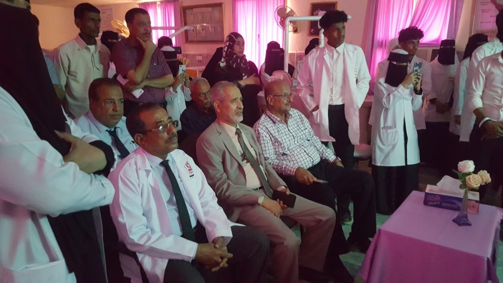 كان في راس مستقبلي نائب وزير الصحة العامة و السكان و رئيس جامعة عدن د/ جمال ناصر امذيب عميد المعهد و د/ فضل محمد محسن نائب عميد المعهد االاول و الأستاذ عصام عثمان نائب العميد للشئون الاكايمية و الأستاذ/ صالح قاسم نائب العميد للشئون الإدارية و المالية و الأستاذ / أحمد المحضار نائب العميد لشئون الطلاب و الفروع و د/ ناصر ماطر مدير دائرة الشئون التعليمية و الأستاذ/ عبداللطيف الحاشدي مدير دائرة التطوير الاكاديمي و الأستاذ / زهير أحمد الخضر مدير دائرة الاعلام بالمعهد و الاستاذ/ جمال عبدالرحيم رئيس قسم العلاقات العامة و كافة روؤساء الأقسام العلمية