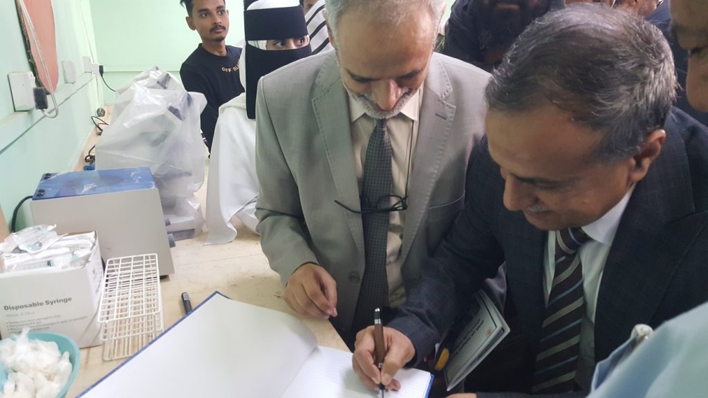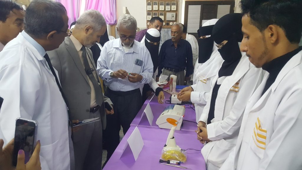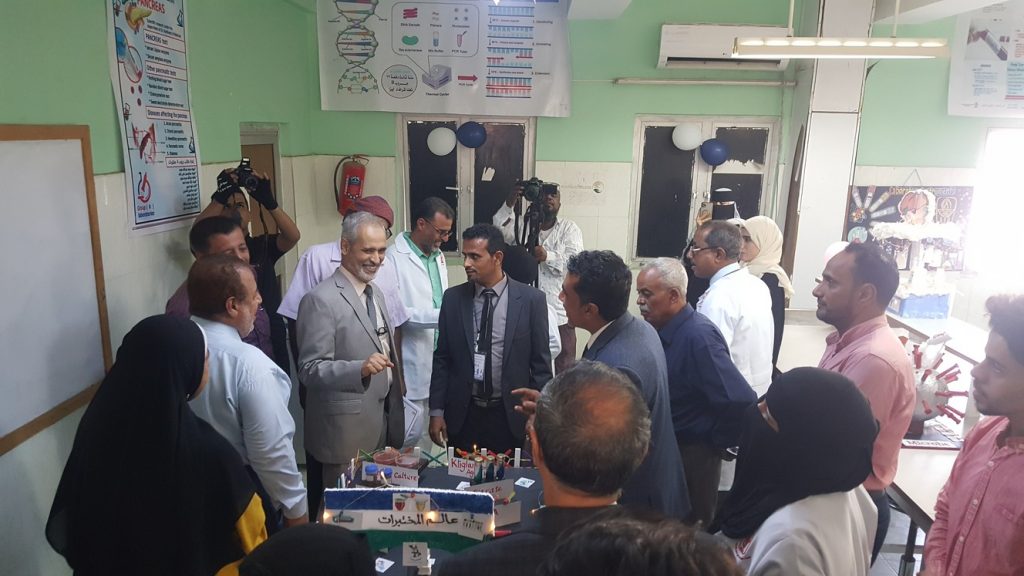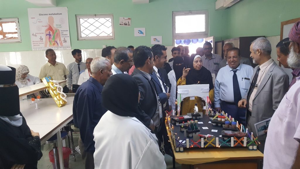في جو يملؤه الفرح والتفاؤل افتتح اليوم الاحد د / عبدالله دحان نائب وزير الصحة العامة و السكان و د/ الخضر ناصر لصور رئيس جامعة عدن و د / جمال ناصر امذيب عميد المعهد المعرض العلمي لمعهد الدكتور أمين ناشر العالي للعلوم الصحية ضمن فعاليات الاحتفالية بالذكرى الرابعة و الخمسين لتأسيس المعهد.