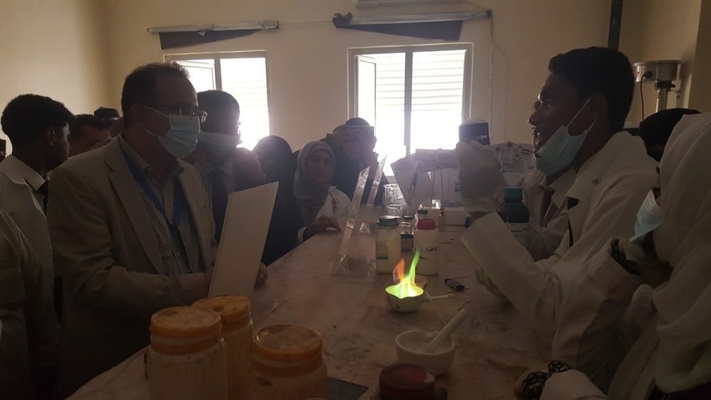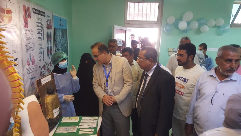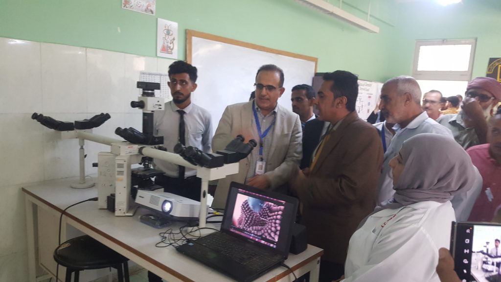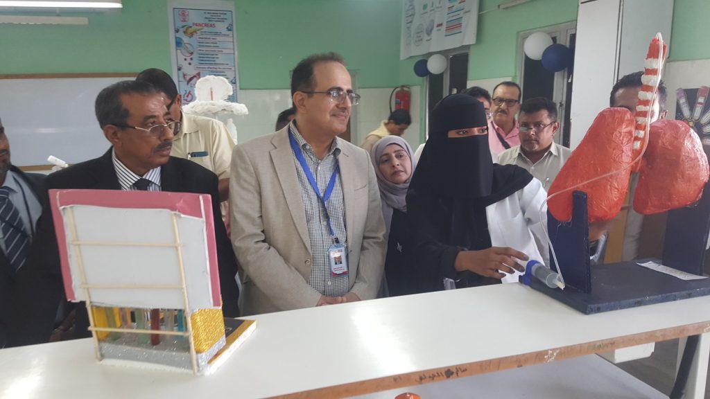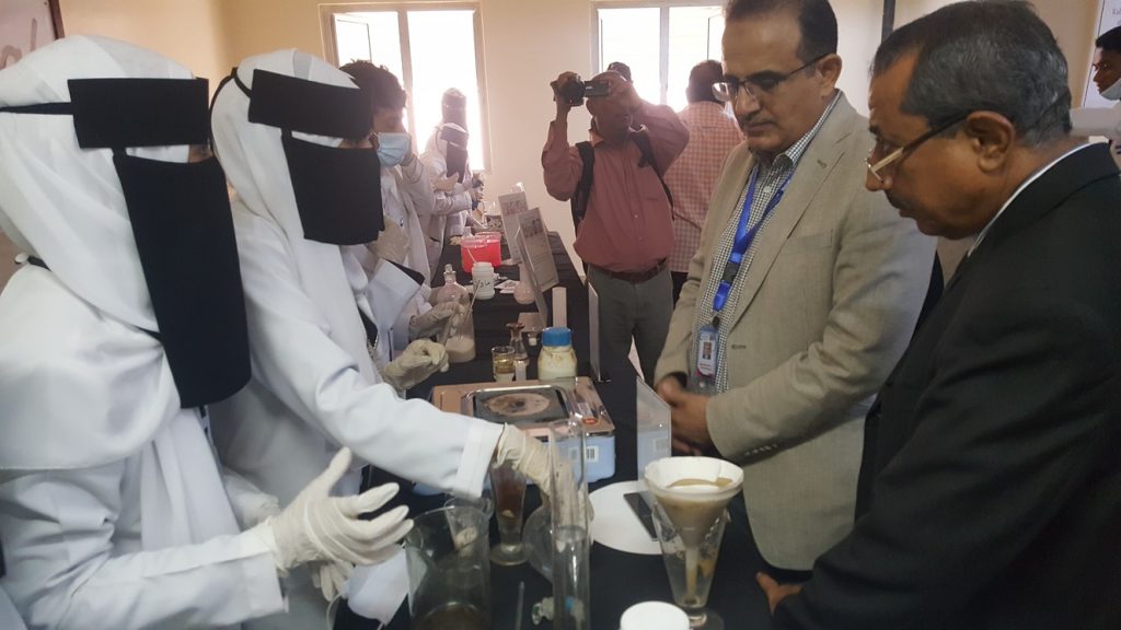 وطاف وزير الصحة ومرافقوه بالمكتبة العلمية و معمل الأسنان و بأجنحة المعرض العلمي المختلفة واطلع على ابداعات الطلاب في التخصصات العلمية للأشعة والمختبر والصيدلة والأسنان والعلاج الطبيعي والصحة الانجابية، والتمريض وصحة المجتمع والتخدير والعمليات.
