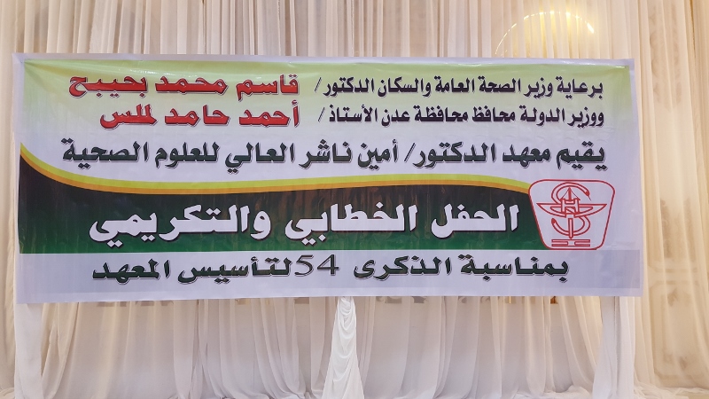 في اليوم الأخير للاحتفالية بالذكرى الرابعة والخمسين لتأسيس المعهد بالعاصمة عدن وفي أجواء فرائحيه اقيم الحفل الخطابي والتكريمي.