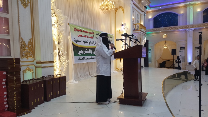 وعقب التكريم ألقت الطالبة اسمار الخالدي كلمة عن مشوار قصة حياتها في هذا المعهد معبرة عن فرحتها اليوم بالذكرى 54 لتأسيس المعهد وابتهاجها بإكمال دراستهم ونيلهم شهادة الدبلوم رغم ما تشهده البلاد من أزمات ألقت بظلالها على الحياة العامة للمجتمع لاسيما طلاب الجامعات والمعاهد.