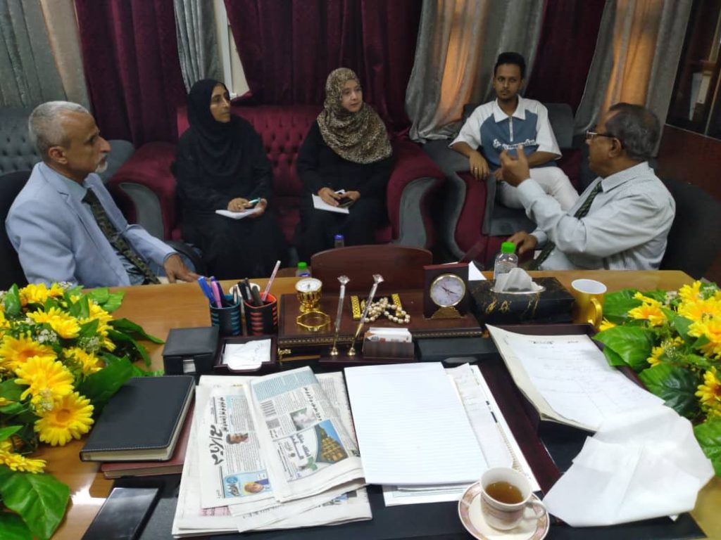 استقبل د. جمال ناصر امذيب عميد معهد د. أمين ناشر العالي للعلوم الصحية في مكتبه اليوم الاستاذ الدكتور/ سالم الشبحي معالي وكيل وزارة الصحة العامة والسكان لقطاع السكان بمعية الدكتورة/ إقبال علي شائف مدير عام الصحة الانجابية بقطاع السكان بالوزارة ود. ملاك عبد العزيز مساوى المدير الإقليمي لبرامج منظمة ماري ستوبس MSIY و د. الهام فهيم منسقة الصحة الإنجابية وبرامج القبالة في صندوق الأمم المتحدة للسكان UNFPA وكرم بلال من مكتب وكيل قطاع السكان