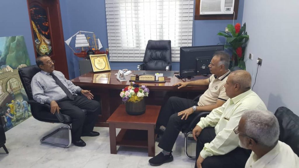 زار عميد معهد د. امين ناشر العالي للعلوم الصحية الدكتور/ جمال ناصر امذيب مدير عام مديرية المعلا رئيس المجلس المحلي أ. عبد الرحيم عبد الكريم الجاوي في مبنى المجلس المحلي م/ المعلا.