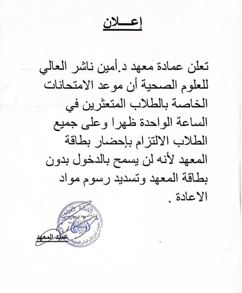 اعلان : توقيت وشروط الجلوس الواجبه لاداء الامتحانات الخاصة بالمتعثرين