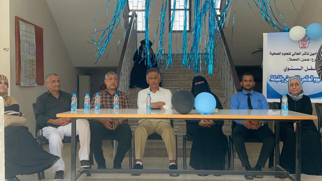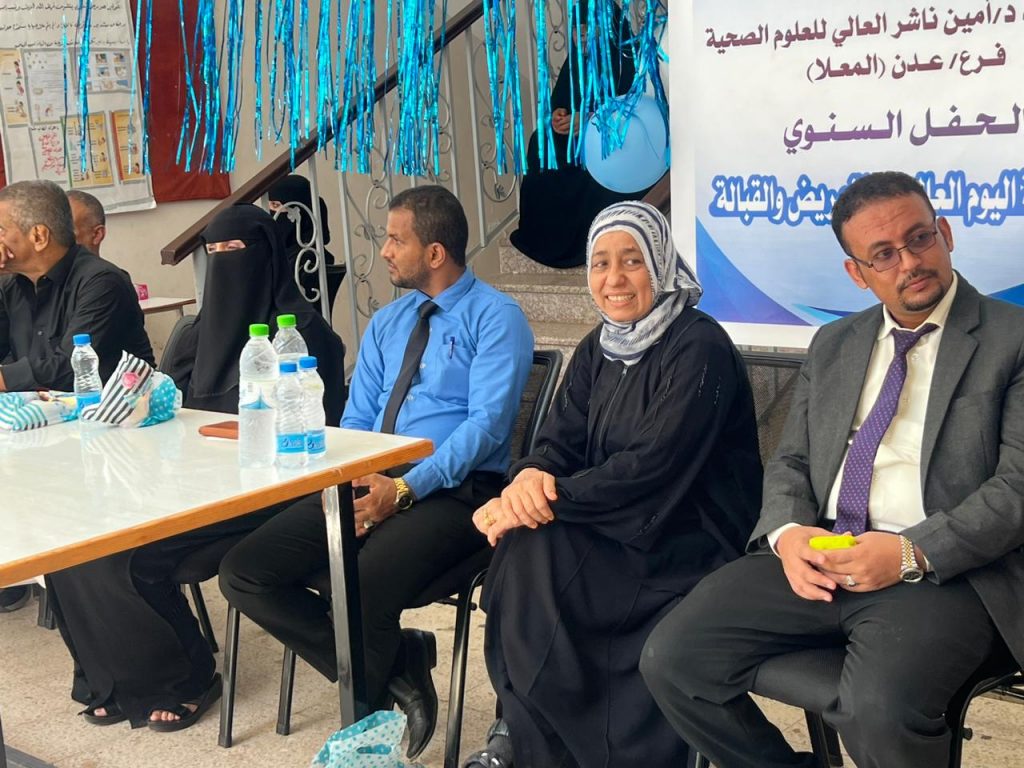 اقام معهد د. أمين ناشر العالي للعلوم الصحية فرع عدن الكائن في المعلا فعالية الاحتفالية السنوية باليوم العالمي للتمريض والقبالة برعاية د. جمال ناصر امذيب عميد المعهد وبأشراف من مديرة المعهد الفرعي الدكتورة تنوير صادق والأستاذ إبراهيم رئيس قسم التمريض و الأستاذة منال رئيسة قسم القبالة و الأستاذة مروى رئيسة قسم الانشطه في المعهد الفرعي وبحضور من الأستاذ عبدالرحيم جاوي مدير عام المجلس المحلي بمديرية المعلا وعدد من المسئولين في المديرية.