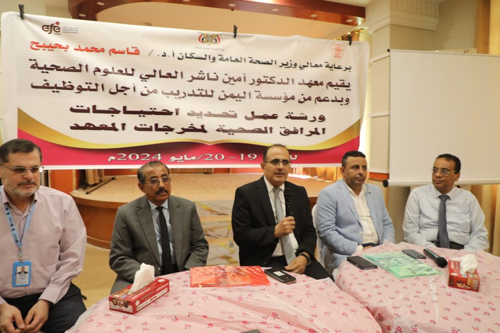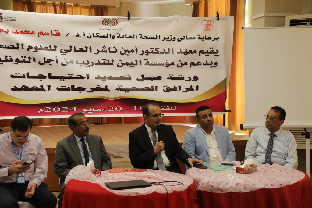 افتتح وزير الصحة العامة والسكان الدكتور قاسم محمد بحيبح بالعاصمة المؤقتة عدن اليوم ورشة تحديد احتياجات المرافق الصحية التي ينظمها معهد الدكتور امين ناشر العالي للعلوم الصحية بدعم من مؤسسة اليمن للتدريب من أجل التوظيف
