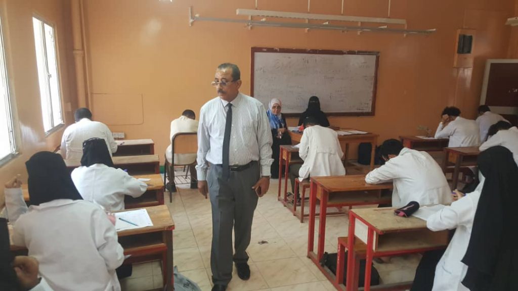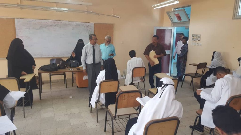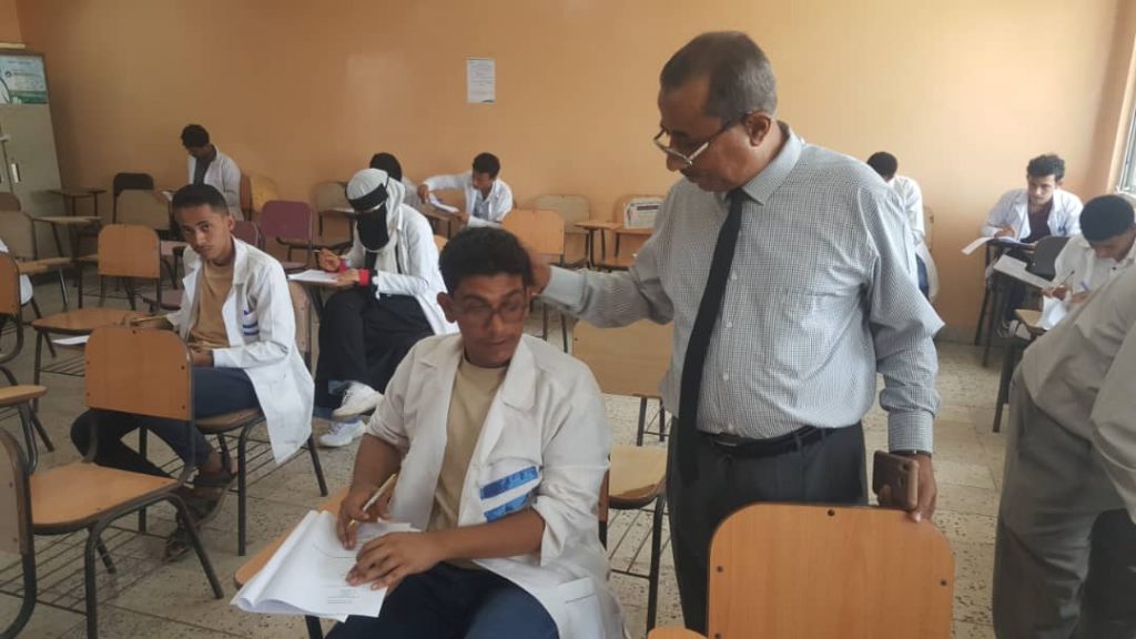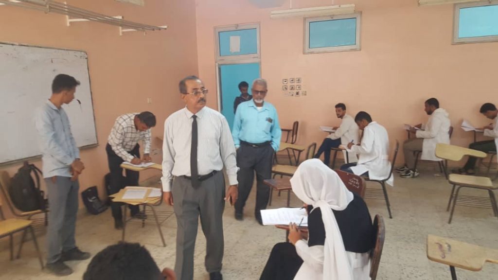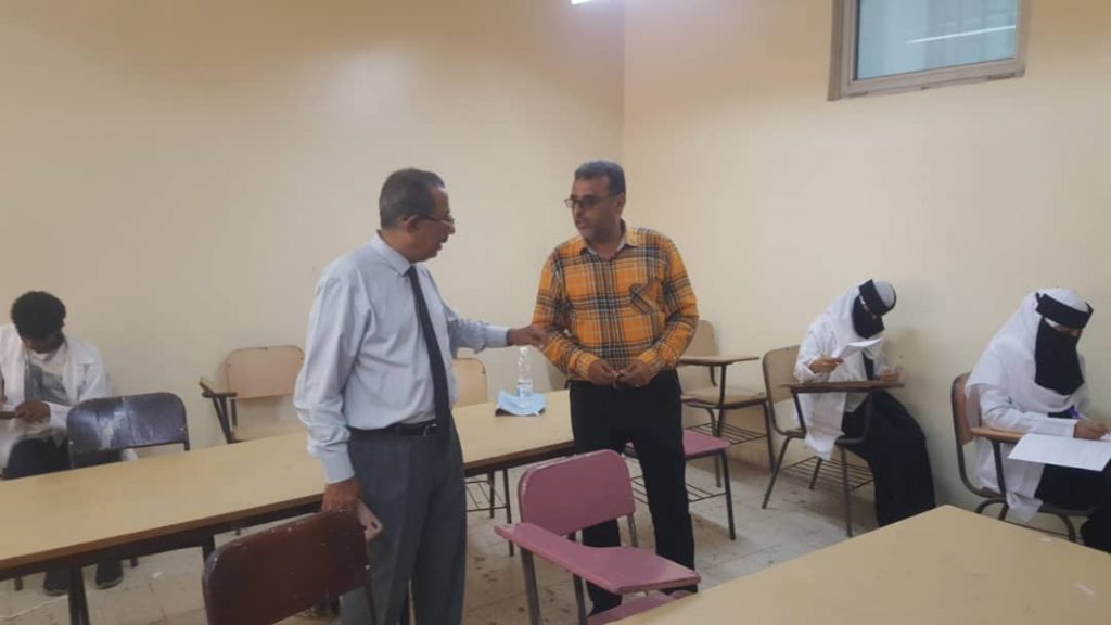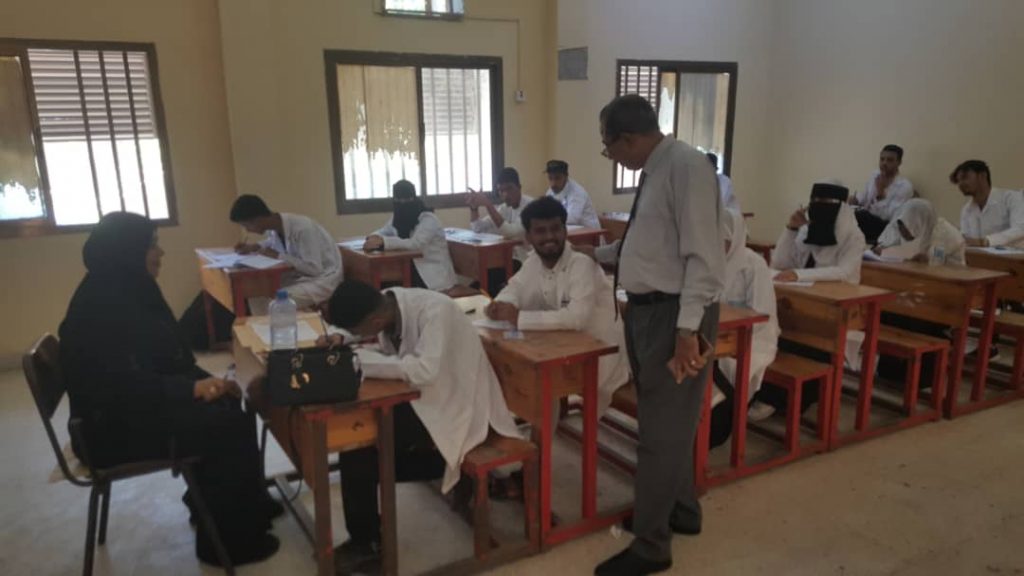 وقد قام عميد المعهد د. جمال ناصر امذيب بجولة تفقدية لقاعات الامتحان للتعرف على أي صعوبات تواجه عملية سير أداء الامتحانات وسؤال طلاب وطالبات المعهد المؤدين للامتحان عن أي صعوبات او عدم وضوح في طريقة وضع الأسئلة خصوصا وان الامتحان يطبق عليه نظام التصحيح الالكتروني الذي اقر من الدورة الامتحانيه السابقة لتلافي أي أخطاء او عدم فهم للنظام الحالي.