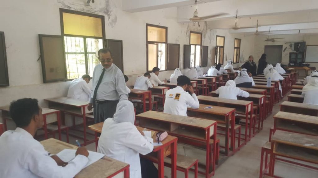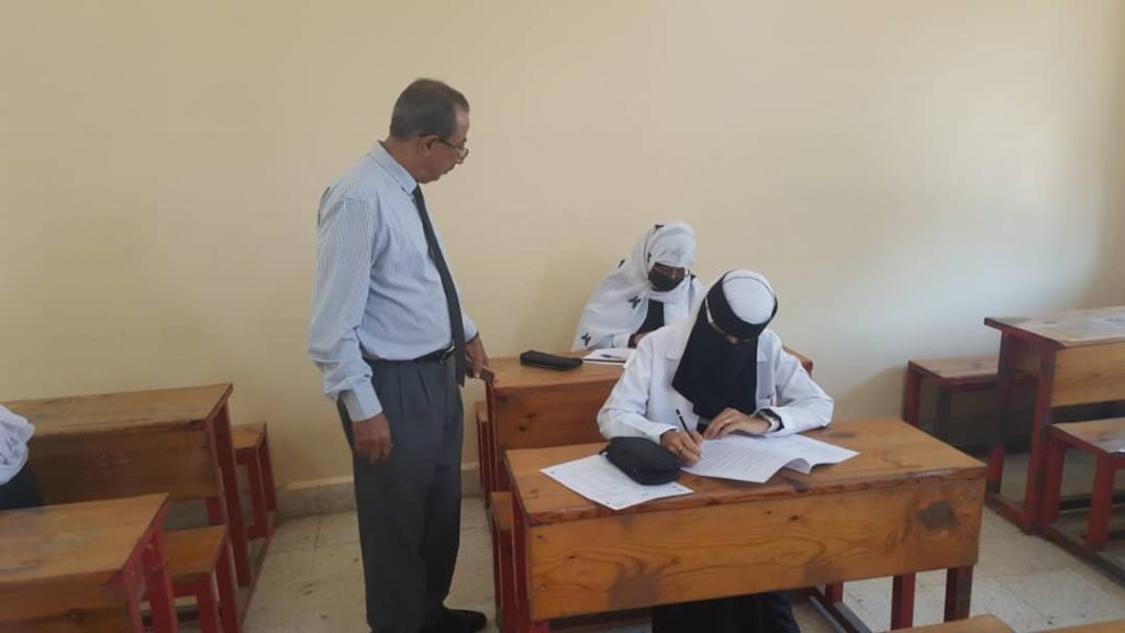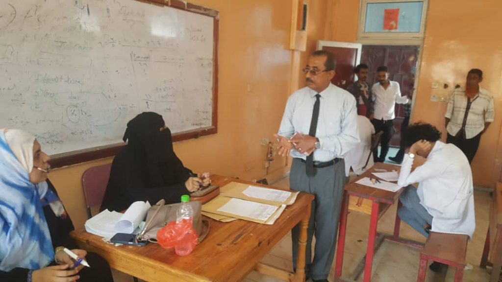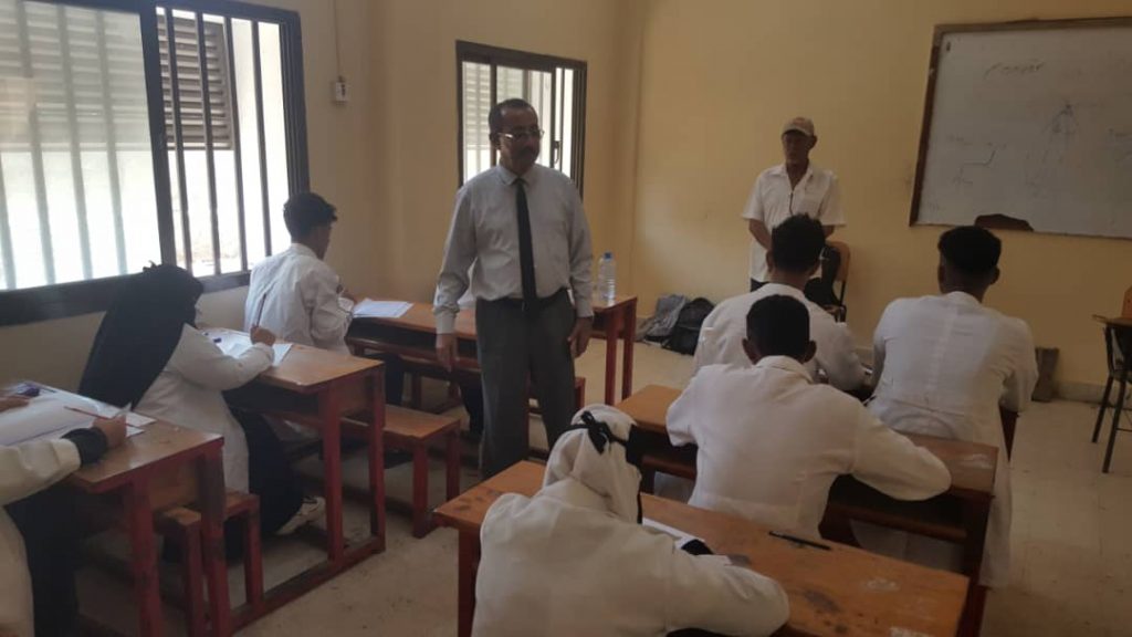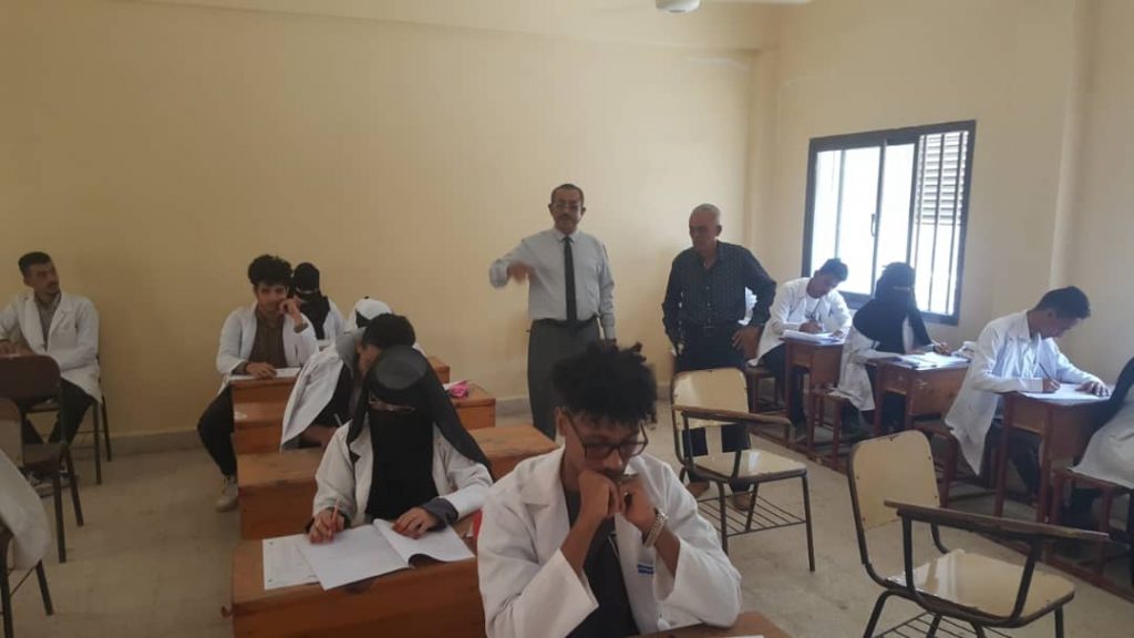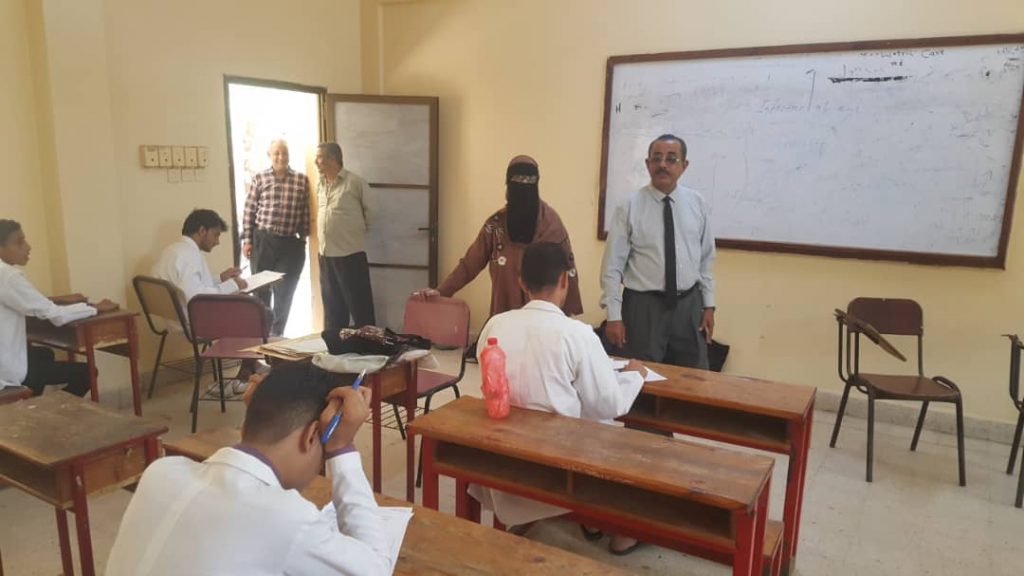 وقد قام عميد المعهد د. جمال ناصر امذيب بجولة تفقدية لقاعات الامتحان للتعرف على أي صعوبات تواجه عملية سير أداء الامتحانات وسؤال طلاب وطالبات المعهد المؤدين للامتحان عن أي صعوبات او عدم وضوح في طريقة وضع الأسئلة خصوصا وان الامتحان يطبق عليه نظام التصحيح الالكتروني الذي اقر من الدورة الامتحانيه السابقة لتلافي أي أخطاء او عدم فهم للنظام الحالي.