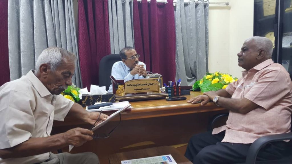 في اللقاء ناقش عميد المعهد د. جمال امذيب مع مدير المعهد الفرعي د. محمد جمبا عدد من قضايا المعهد الفرعي في ابين و حيثيات التسليم والاستلام وتنظيم الهيئة التعليمية و الشئون الإدارية والمالية و إدارة القبول والتسجيل وفقا للوائح المعهد.