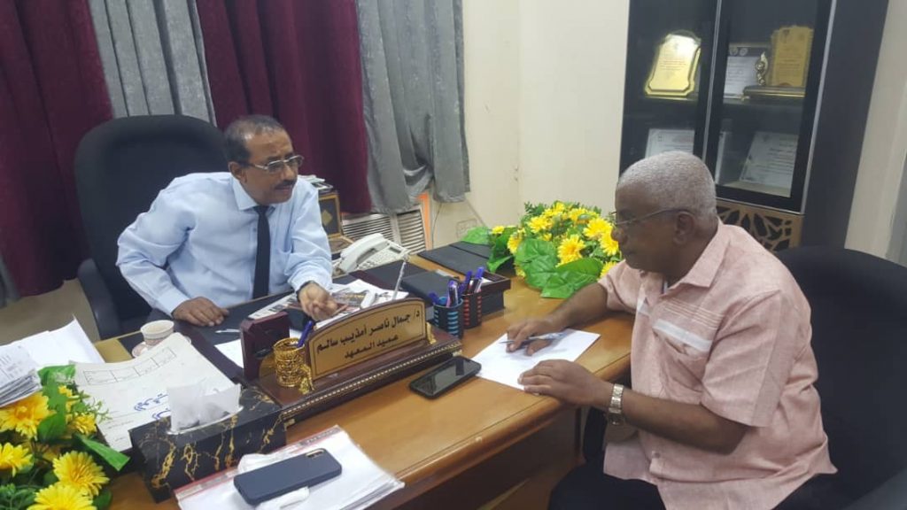 التقى اليوم في مكتبة الدكتور/ جمال ناصر امذيب عميد معهد د . أمين ناشر العالي للعلوم الصحية الدكتور/ محمد عبدالله عوض جمبا المدير المعين لمعهد د. أمين ناشر العالي للعلوم الصحية فرع أبين.