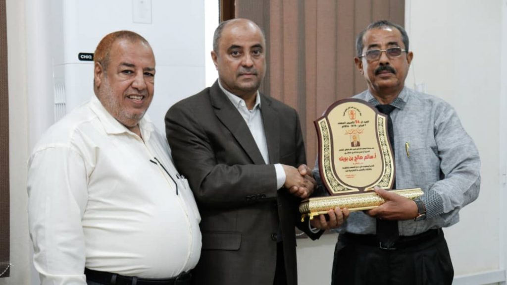 و في نهاية اللقاء سلم عميد المعهد د. جمال امذيب سيادة وزير المالية الأخ سالم صالح سالم بن بريك درع المعهد للذكرى الرابعة و الخمسين لتأسيس المعهد تعبيرا عن شكر المعهد لجهود الوزير في حل وتنظيم العديد من إشكاليات المعهد في الجانب المالي.