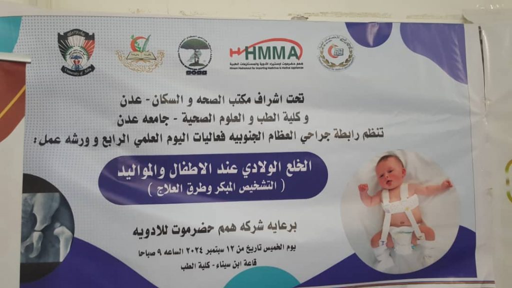 وتضمنت فعالية اليوم العالمي للعلاج الطبيعي فعالية اليوم العلمي الرابع ورشة عمل الخلع الولادي عند الأطفال والمواليد التشخيصي المبكر وطرق العلاج وكما تضمن برنامج اليوم العلمي الرابع لرابطة جراحي العظام الجنوبية محاضرات متخصصة حول خلع الورك عند الأطفال شارك فيها أطباء متخصصون مجال العظام ومن القطاعات الصحية من كليات الطب بجامعة عدن والخدمات الطبية ووزارة الصحة والقطاع الخاص المعنيين بمعالجة مشاكل العلاج الطبيعي وتأهيل خلع الورك للأطفال في جميع مراحله.