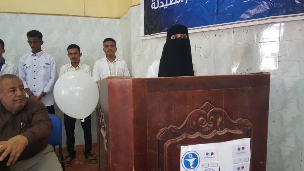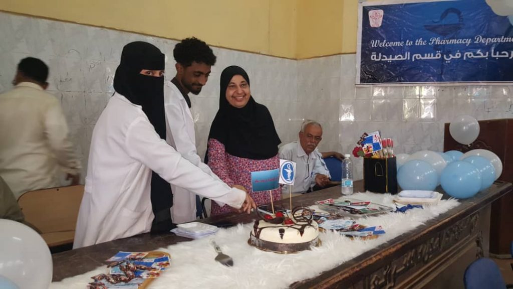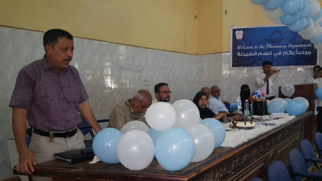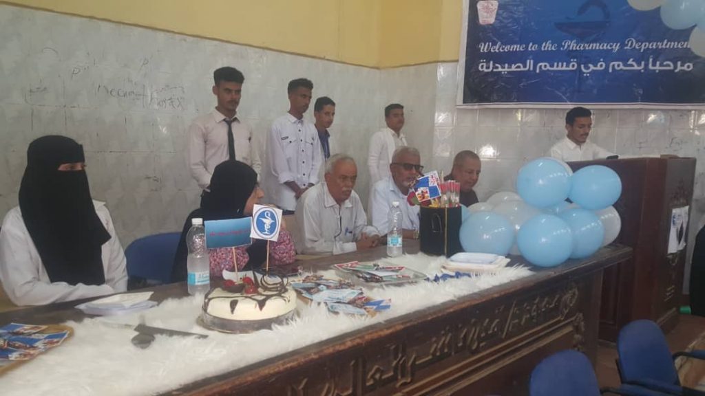 و قد كان ايضا في مقدمة المستقبلين للطلاب المقبولين في قسم الصيدلة أ. أحمد المحضار نائب العميد لشئون الطلاب والفروع ود. نجاة حكيمي مدير دائرة التقنيات و د. ناصر ماطر مدير دائرة الشئون الاكاديمية والاستاذ جمال عبدالرحيم مدير دائرة العلاقات العامة و الاستاذ عبداللطيف الحاشدي مدير دائرة التطوير الاكاديمي و د. منال عبدالواسع رئيسة قسم الصيدلة بالمعهد