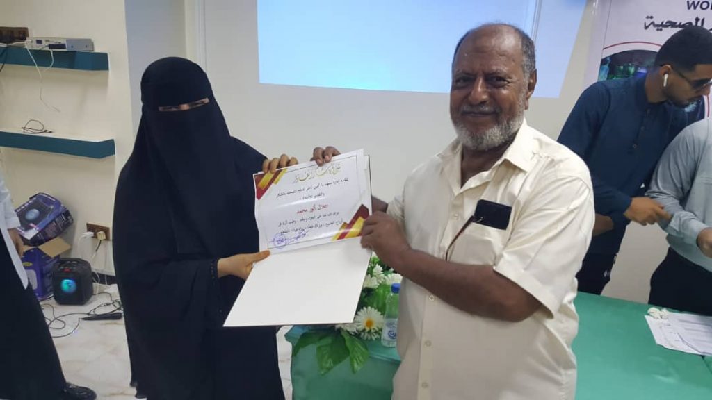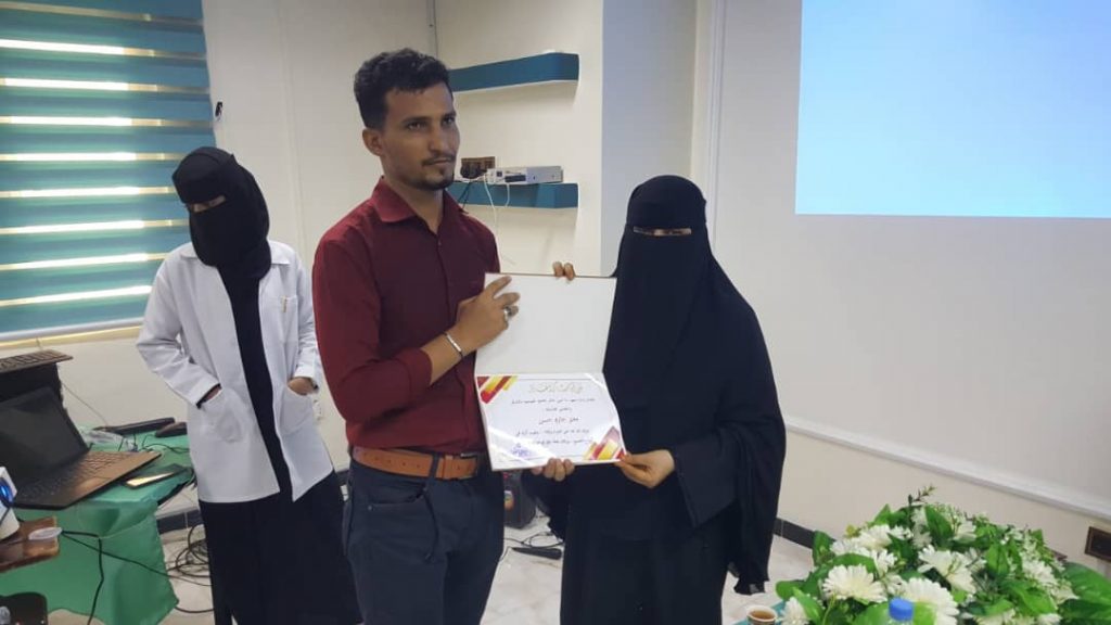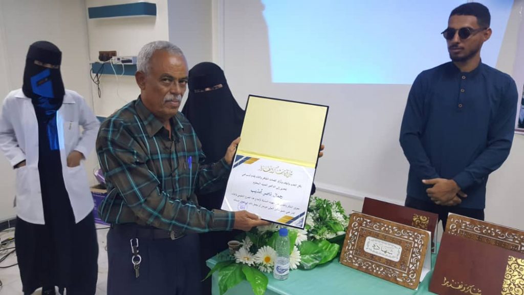 ثم توالت فقرات الحفل لتنتهي بتقديم شهادات الشكر و التقدير لعميد المعهد د. جمال ناصر امذيب الذي تسلمها بالنيابة عنه الاستاذ / عبدالمجيد شيخ مدير دائرة التمريض و للاستاذة باسم و للطلاب و الطالبات الاوائل و المبرزين و المشاركين في اقامة الفعالية في قسم التخدير